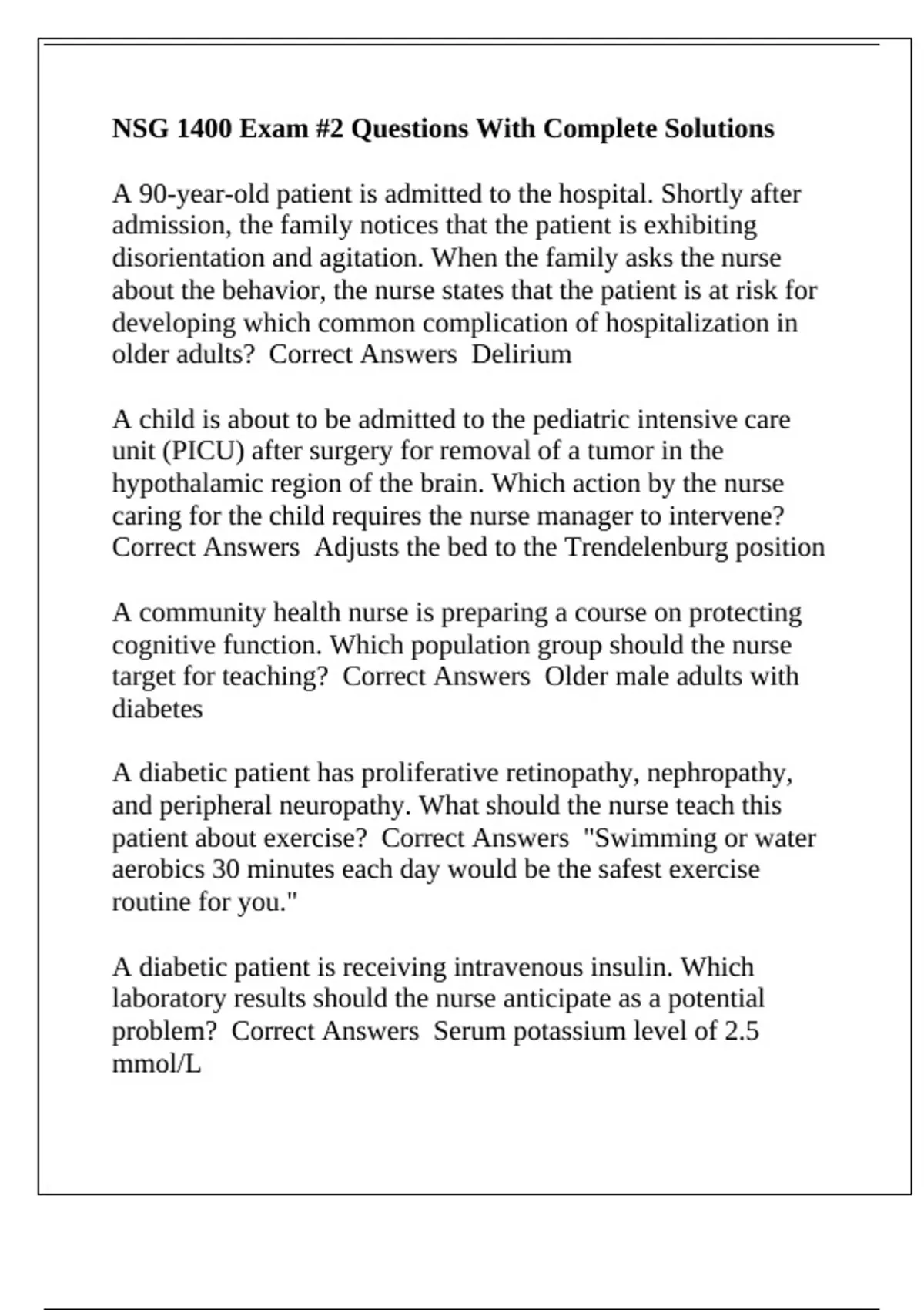 older adults? Correct Answers Delirium