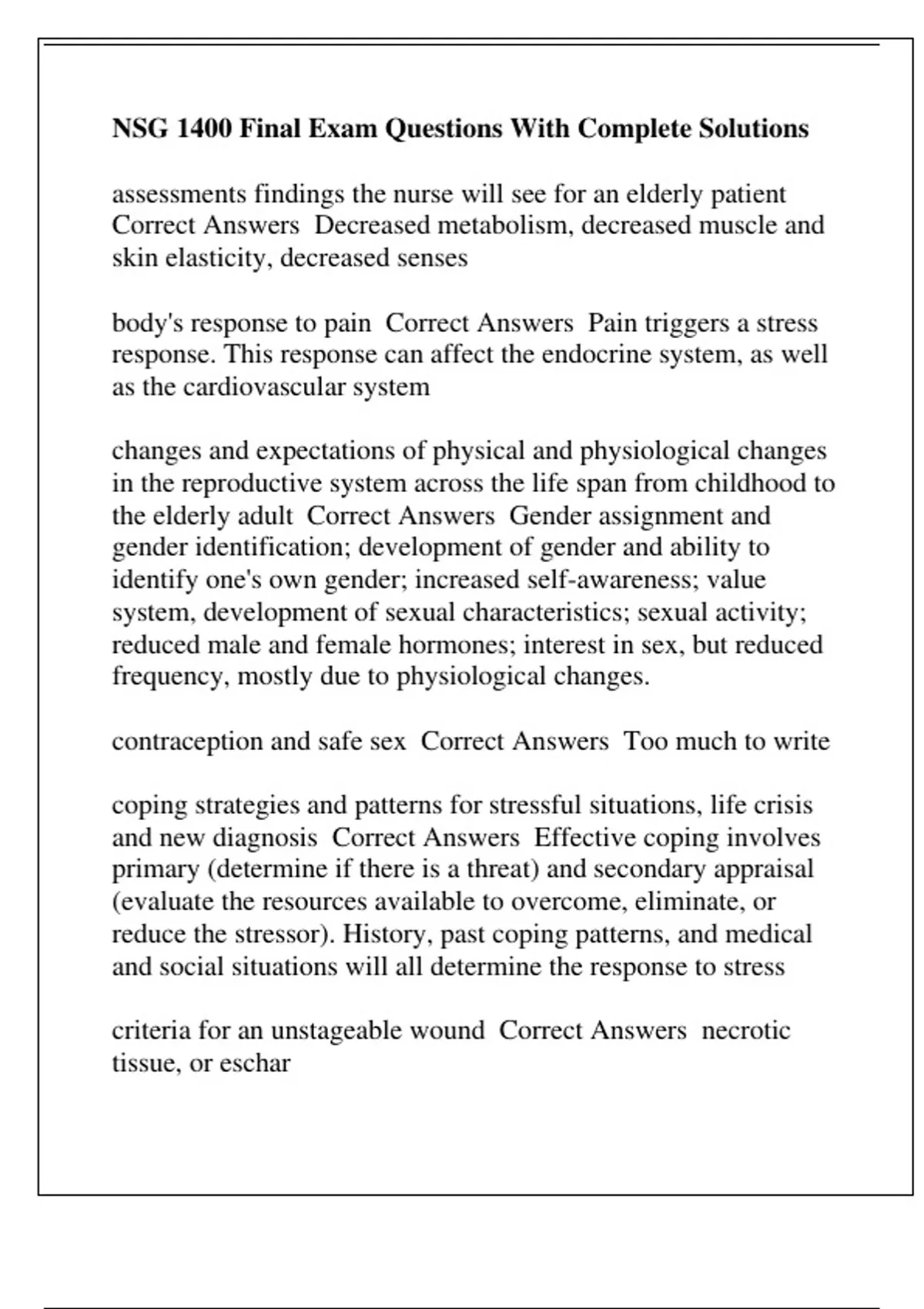 NSG 1400 Final Exam Questions With Complete Solutions