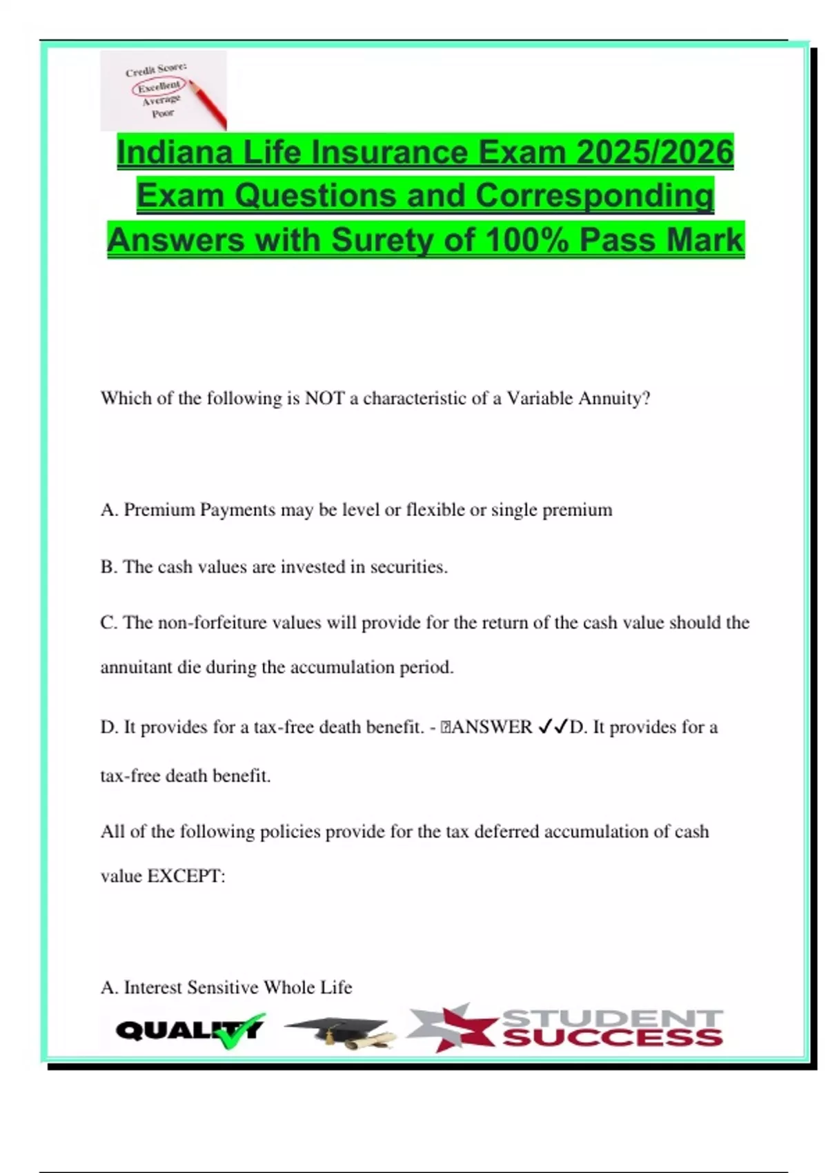 Indiana Life Insurance Exam 2025/2026 – 120+ Verified Questions with Answers – Policy Types, Riders, Beneficiaries, Underwriting, Annuities & State-Specific Rules