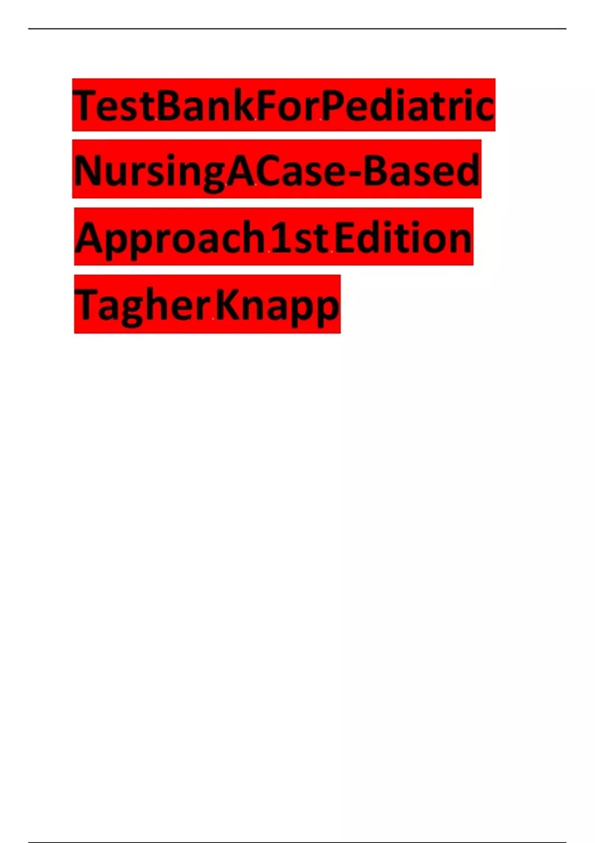 , Pediatric Nursing – A Case-Based Approach 1st Edition Tagher Knapp Test Bank