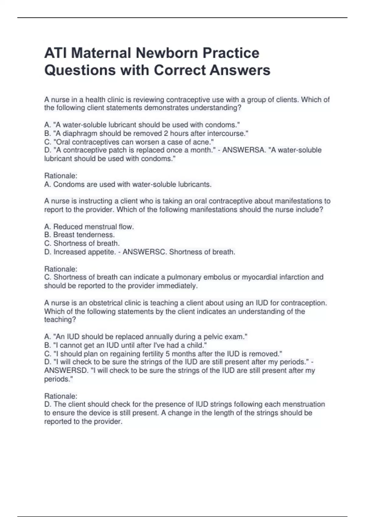 Questions with Correct Answers