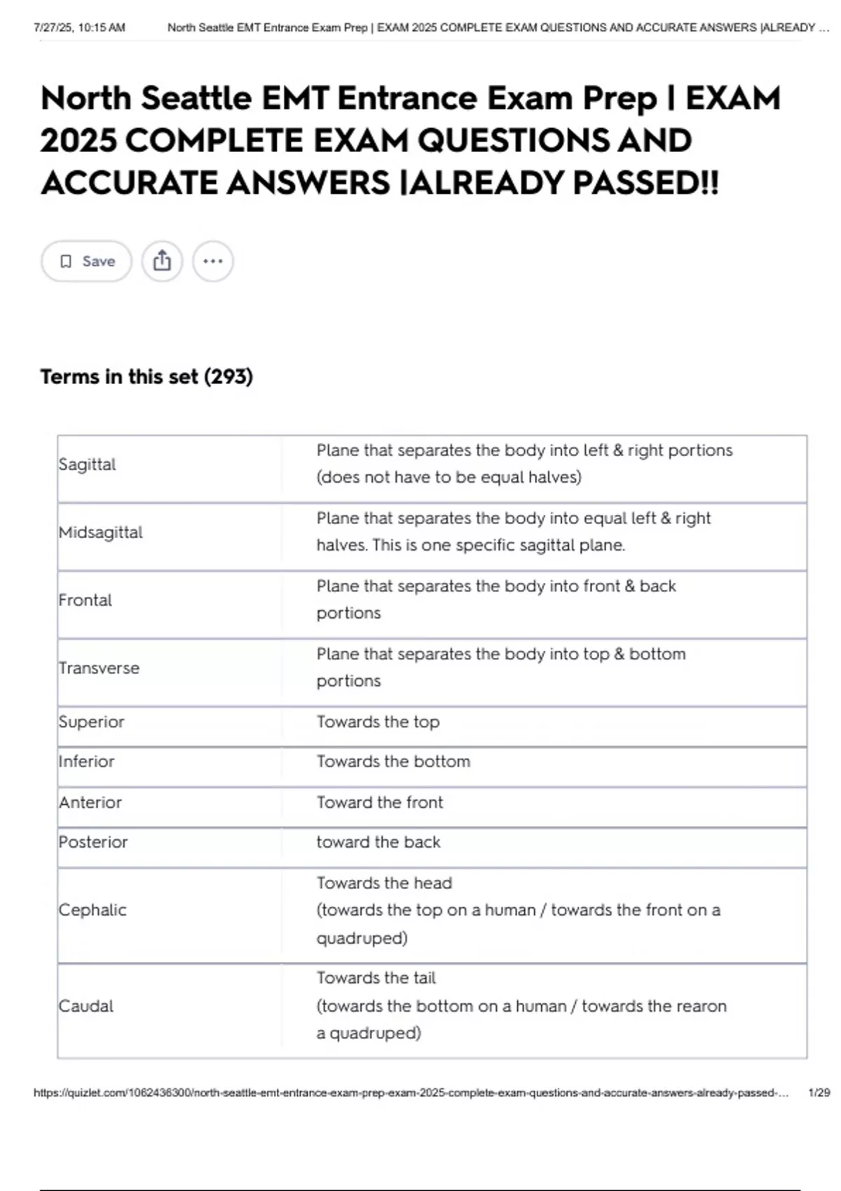 , 7/27/25, 10:15 AM North Seattle EMT Entrance Exam Prep | EXAM 2025 COMPLETE EXAM QUESTIONS AND ACCURATE ANSWERS |ALREADY …