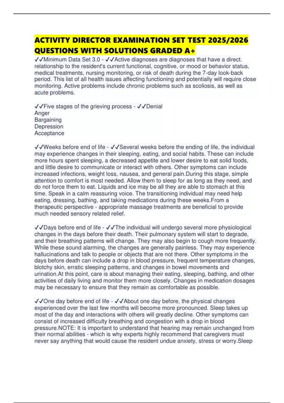 ✔✔Weeks before end of life - ✔✔Several weeks before the ending of life, the individual
