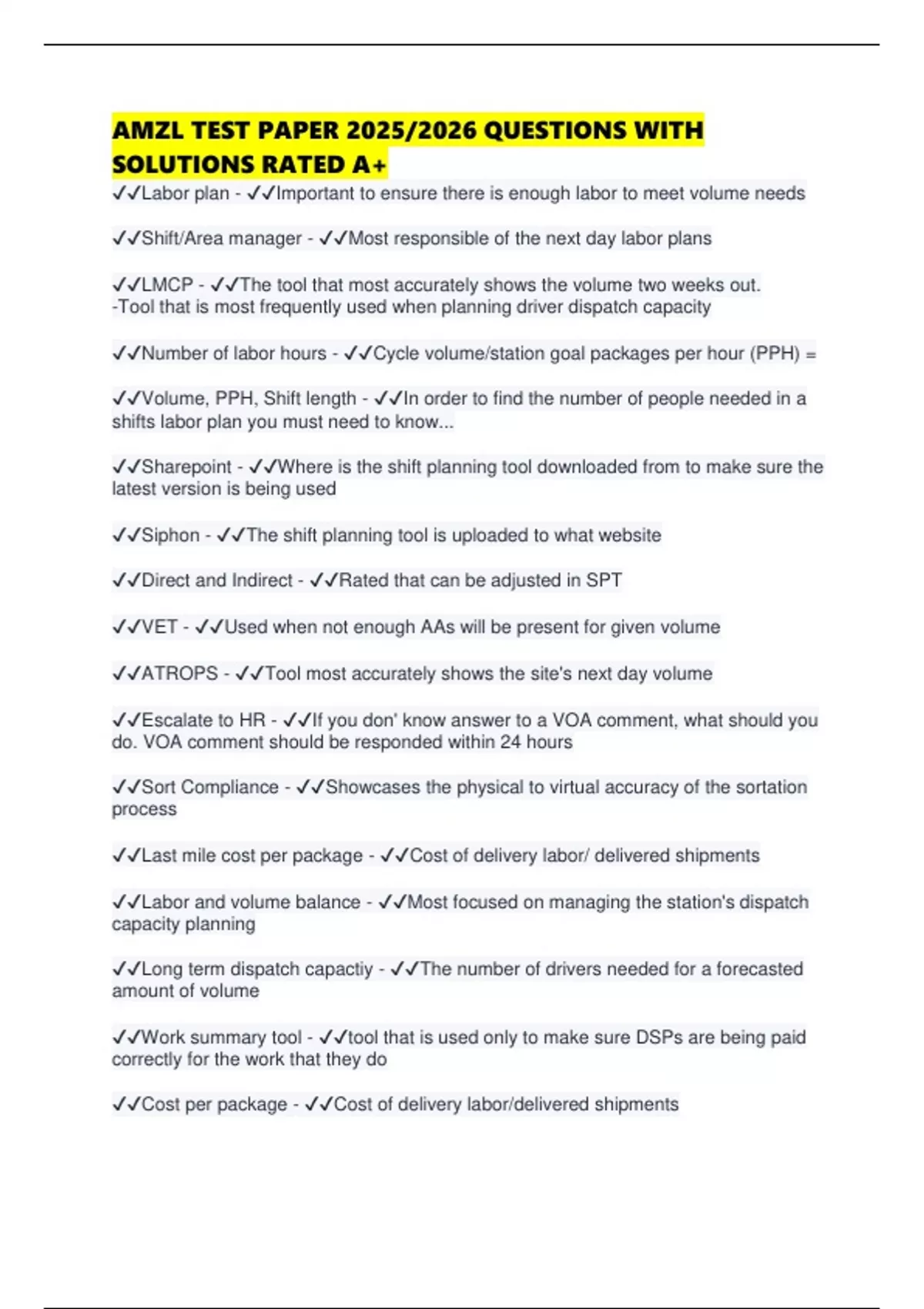 AMZL TEST PAPER 2025/2026 QUESTIONS WITH SOLUTIONS RATED A+