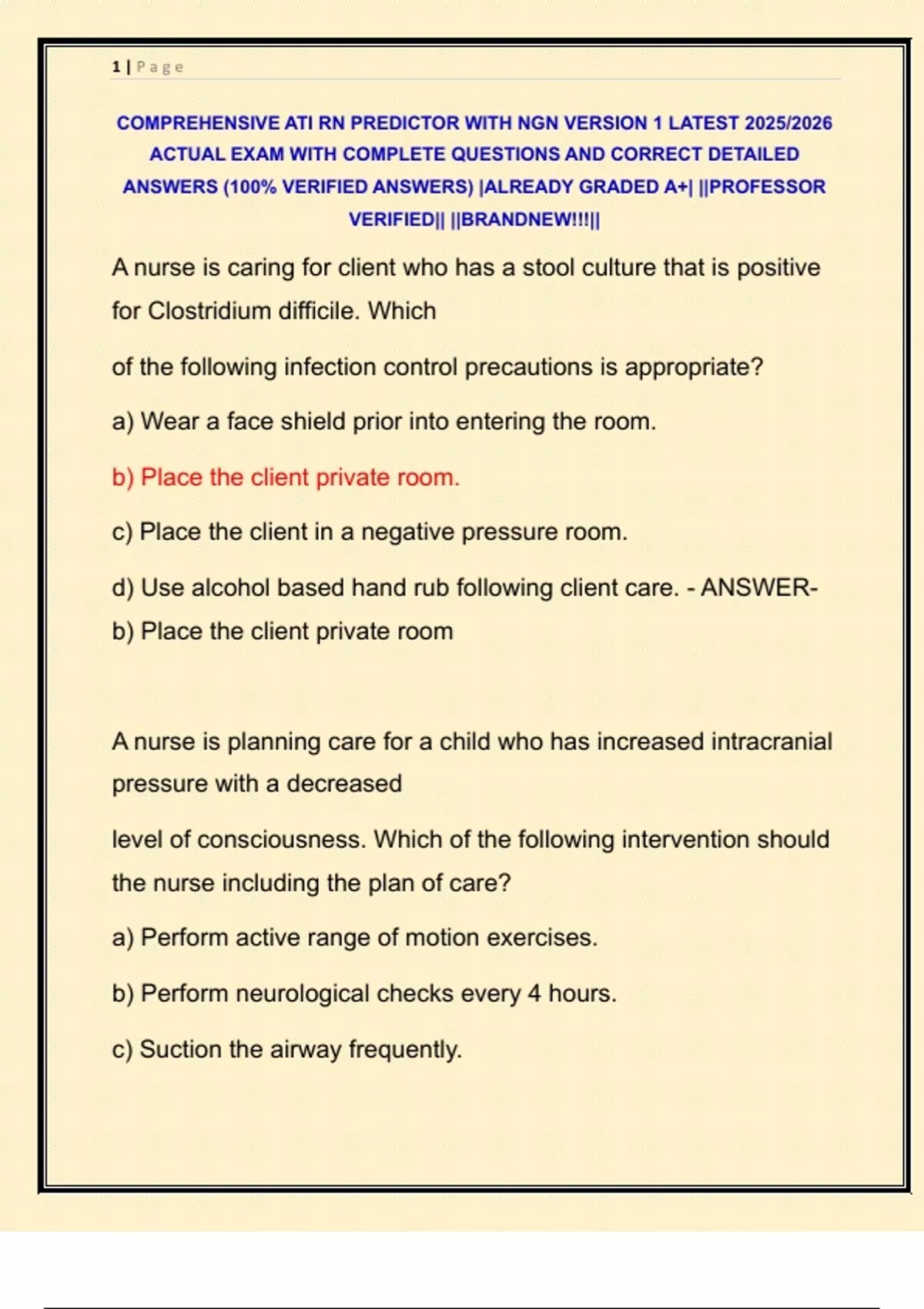 COMPREHENSIVE ATI RN PREDICTOR WITH NGN VERSION 1 LATEST 2025/2026