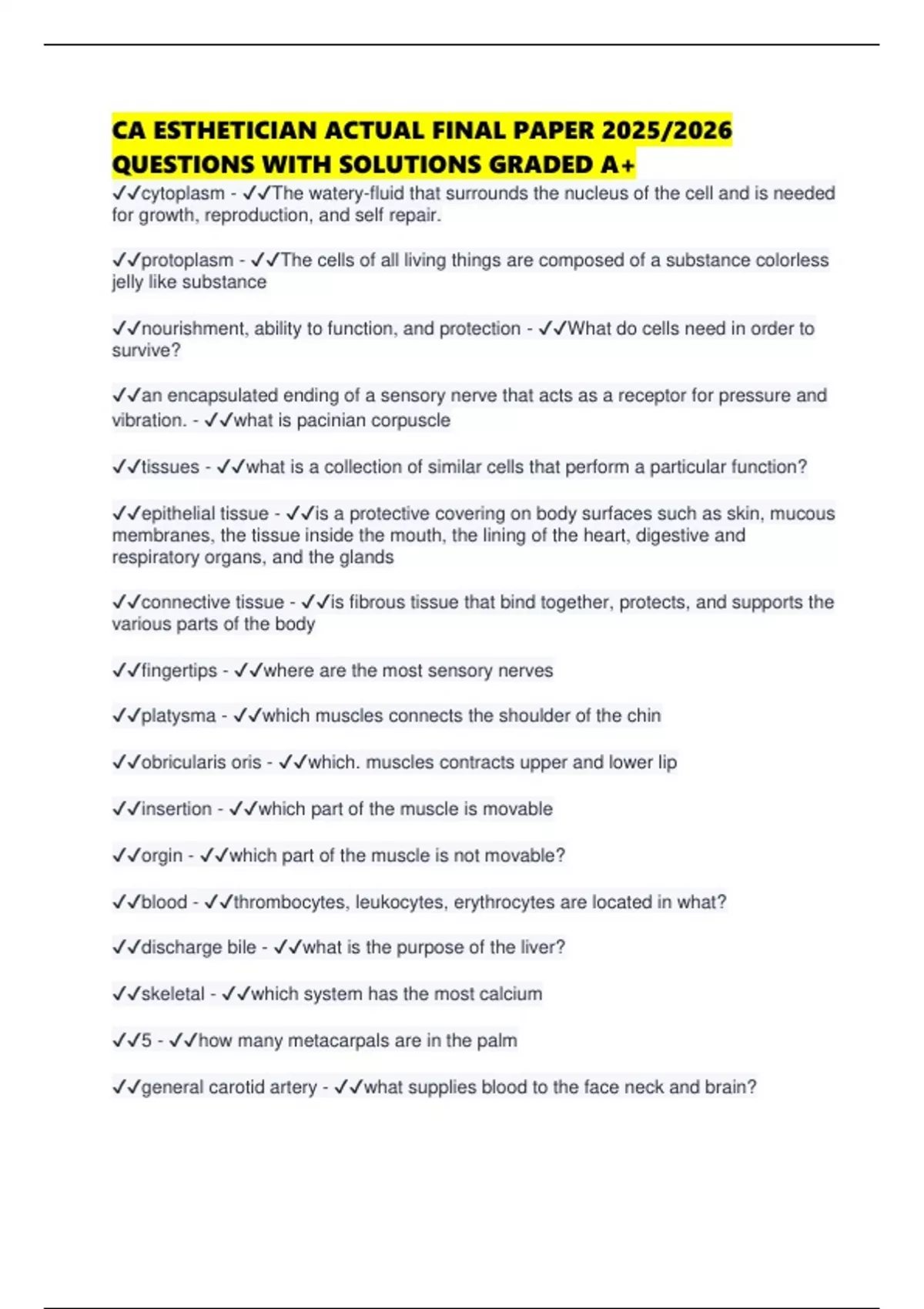 CA ESTHETICIAN ACTUAL FINAL PAPER 2025/2026 QUESTIONS WITH SOLUTIONS GRADED A+