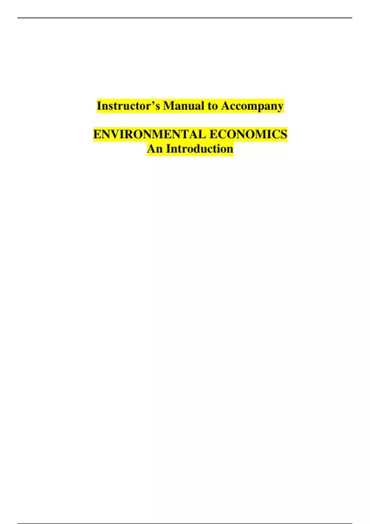 Solution Manual for Environmental Economics, An Introduction: 2024 Release by Martha K. Field ,ISBN: 9781266887390 Chapter 1-21 |All Chapters Verified| Guide A+