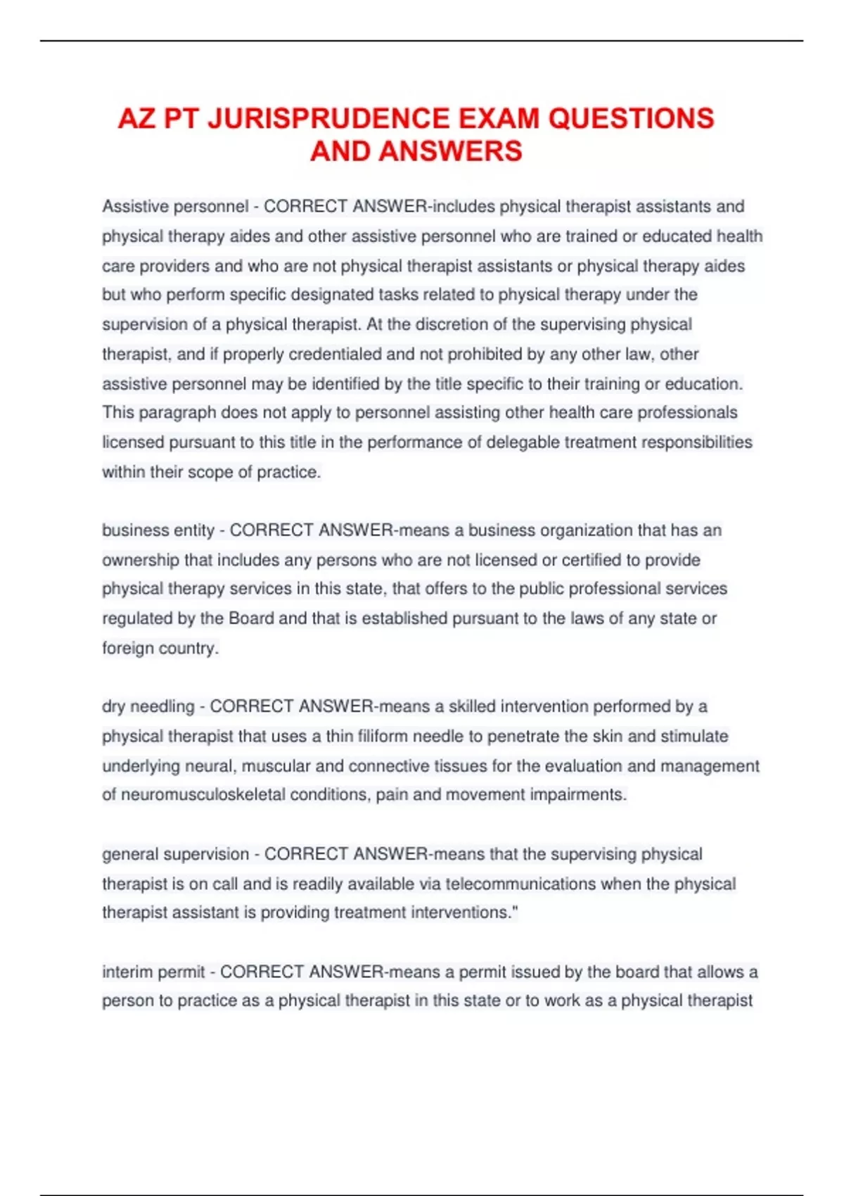 AZ PT JURISPRUDENCE EXAM QUESTIONS
