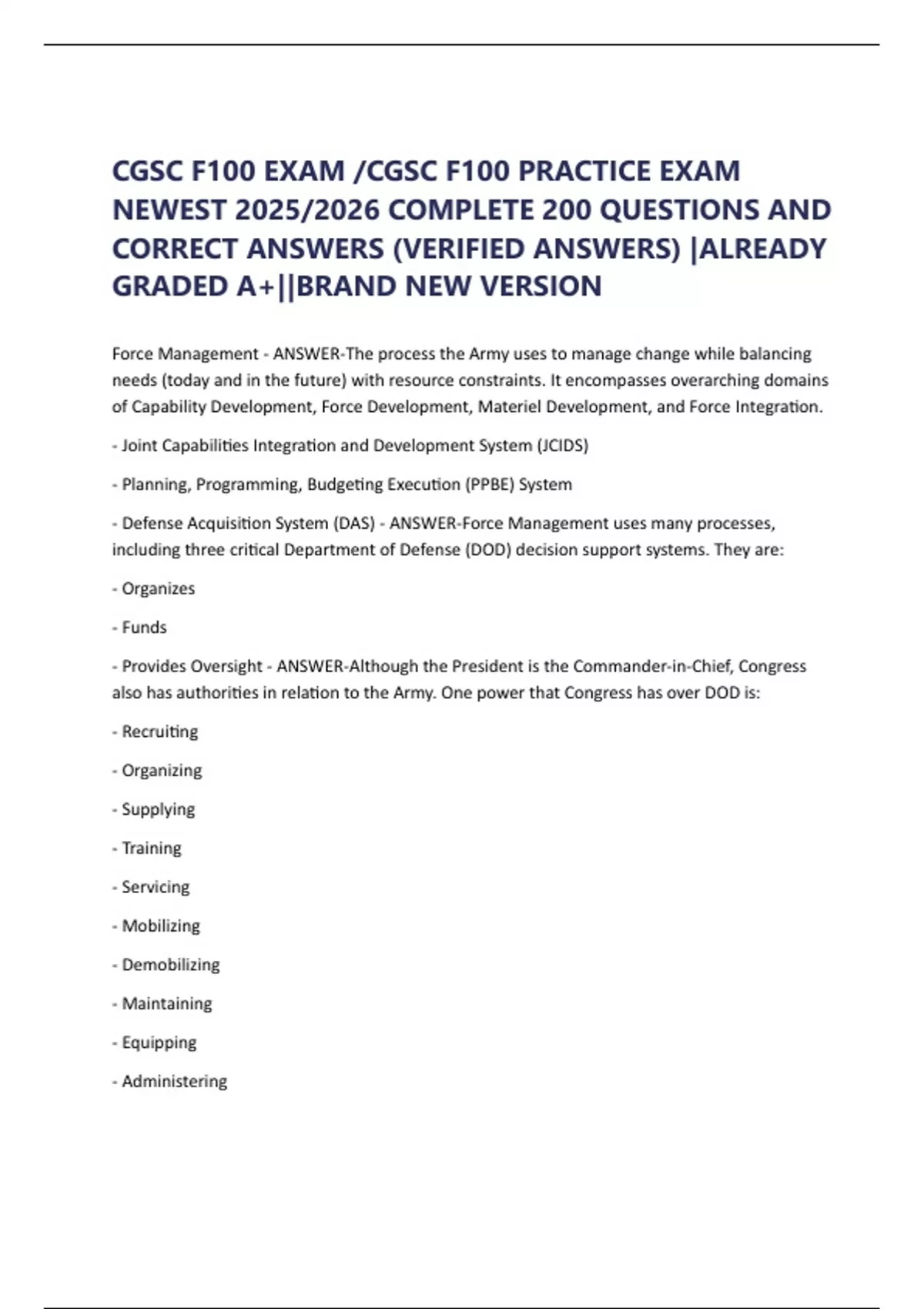 Force Management - ANSWER-The process the Army uses to manage change while balancing