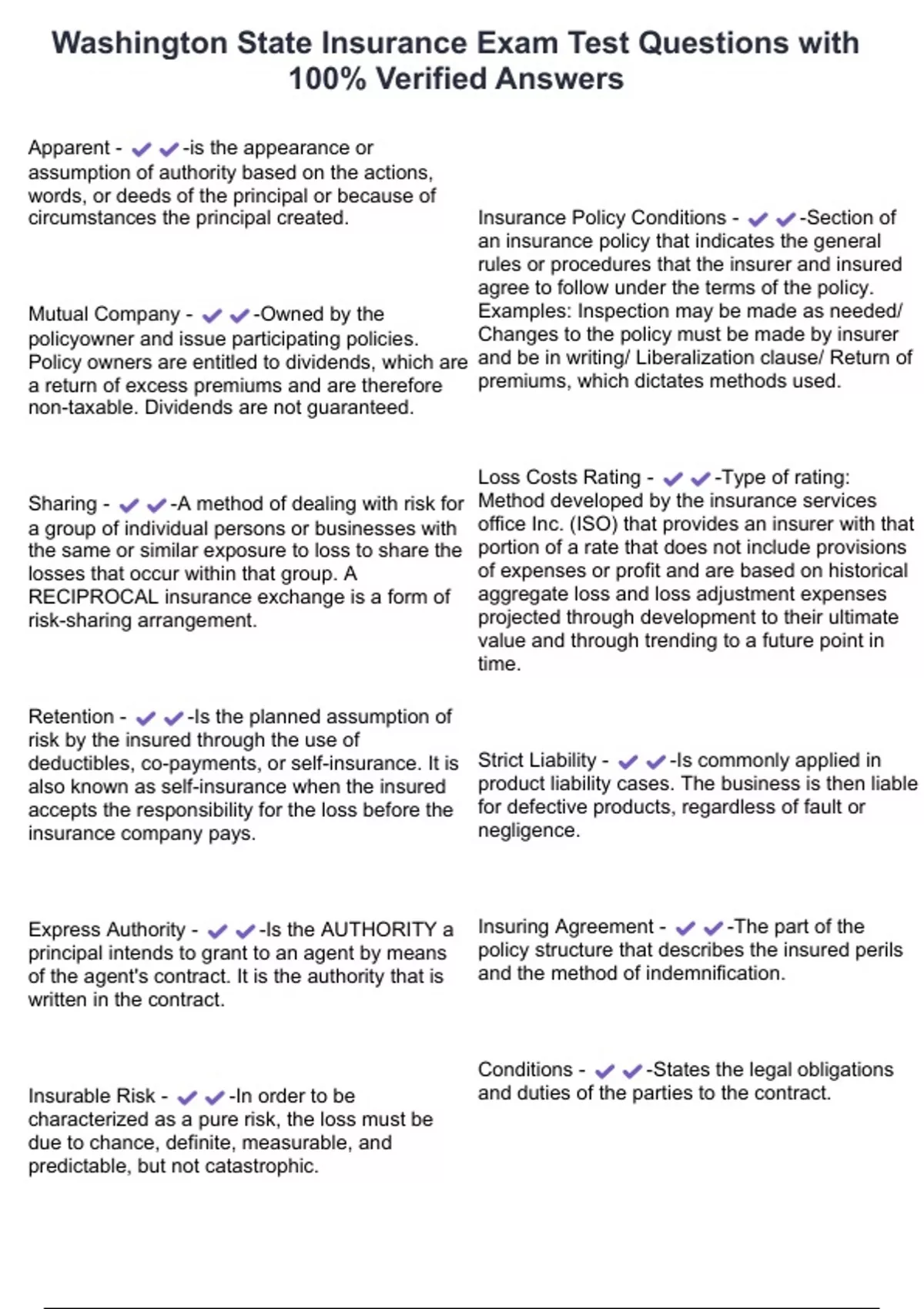 , Washington Life/Health Insurance Exam Test Questions