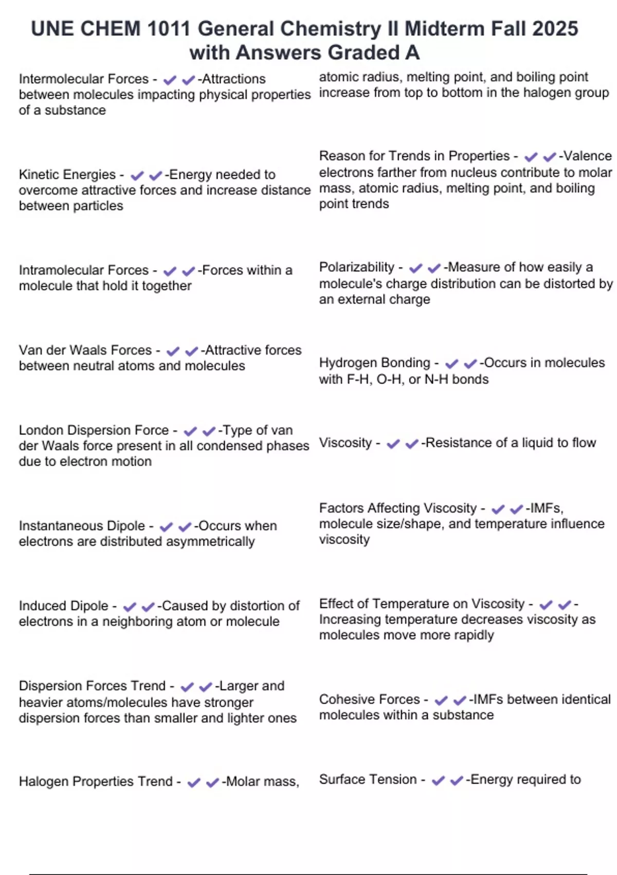 der Waals force present in all condensed phases Viscosity - -Resistance of a liquid to flow