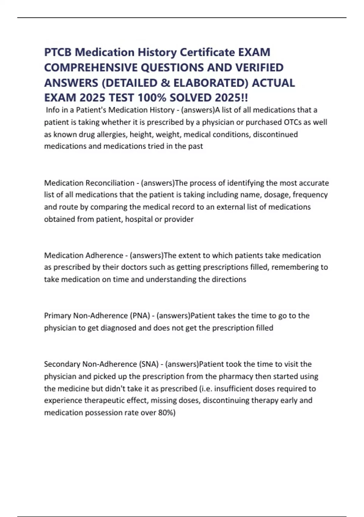 Medication Adherence - (answers)The extent to which patients take medication