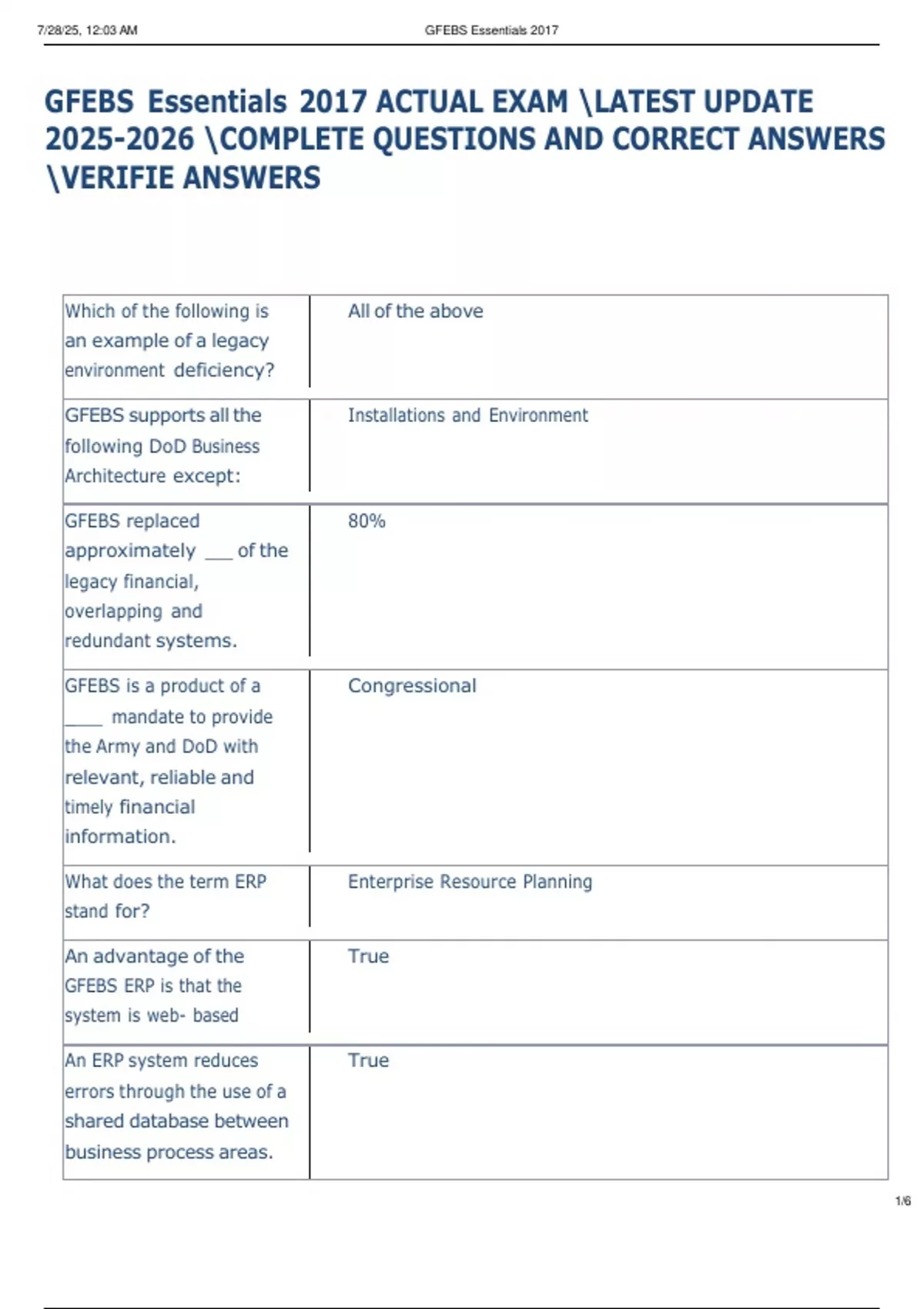 GFEBS Essentials 2017 ACTUAL EXAM \LATEST UPDATE