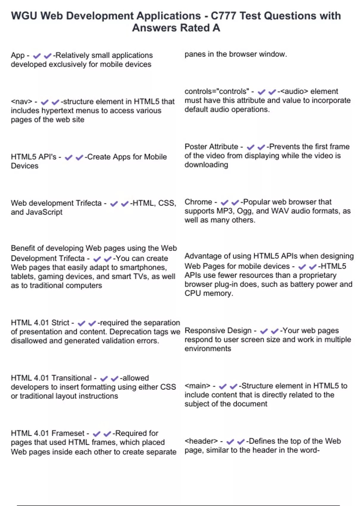 WGU Web Development Applications - C777 Test Questions with Answers Rated A