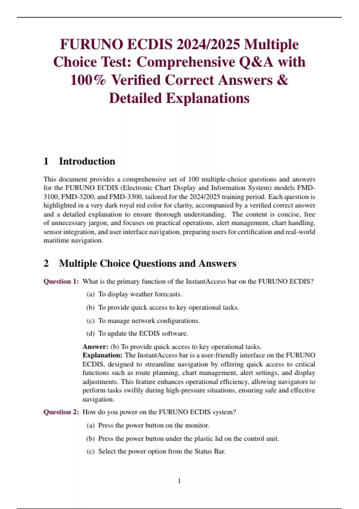 100% Verified Correct Answers &