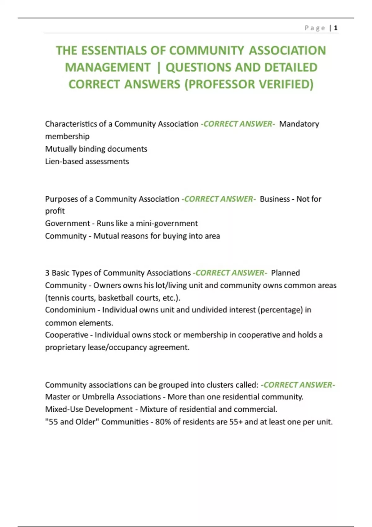 Characteristics of a Community Association -CORRECT ANSWER- Mandatory