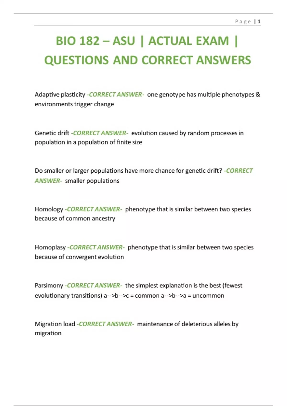 BIO 182 – ASU | ACTUAL EXAM |