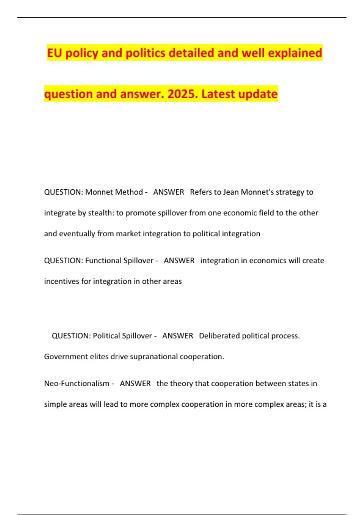 QUESTION: Functional Spillover - ANSWER integration in economics will create