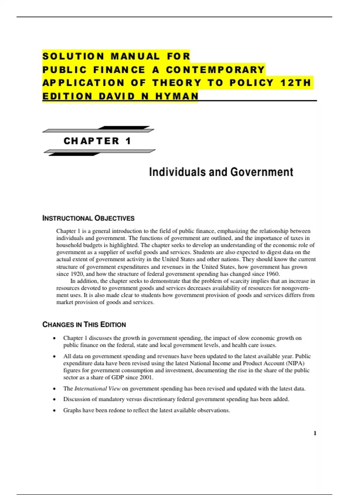 Solution Manual for Public Finance: A Contemporary Application of Theory to Policy 12th Edition by David Hyman , ISBN: 9780357442159 |All Chapters Verified| Guide A+