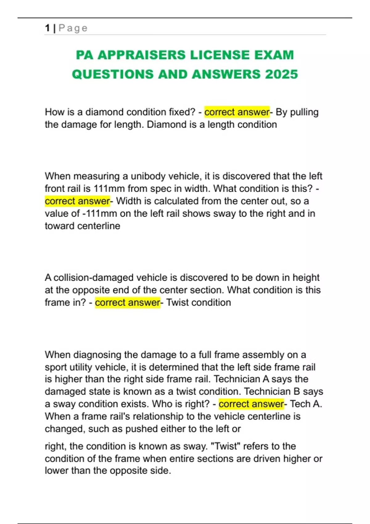 damaged state is known as a twist condition. Technician B says