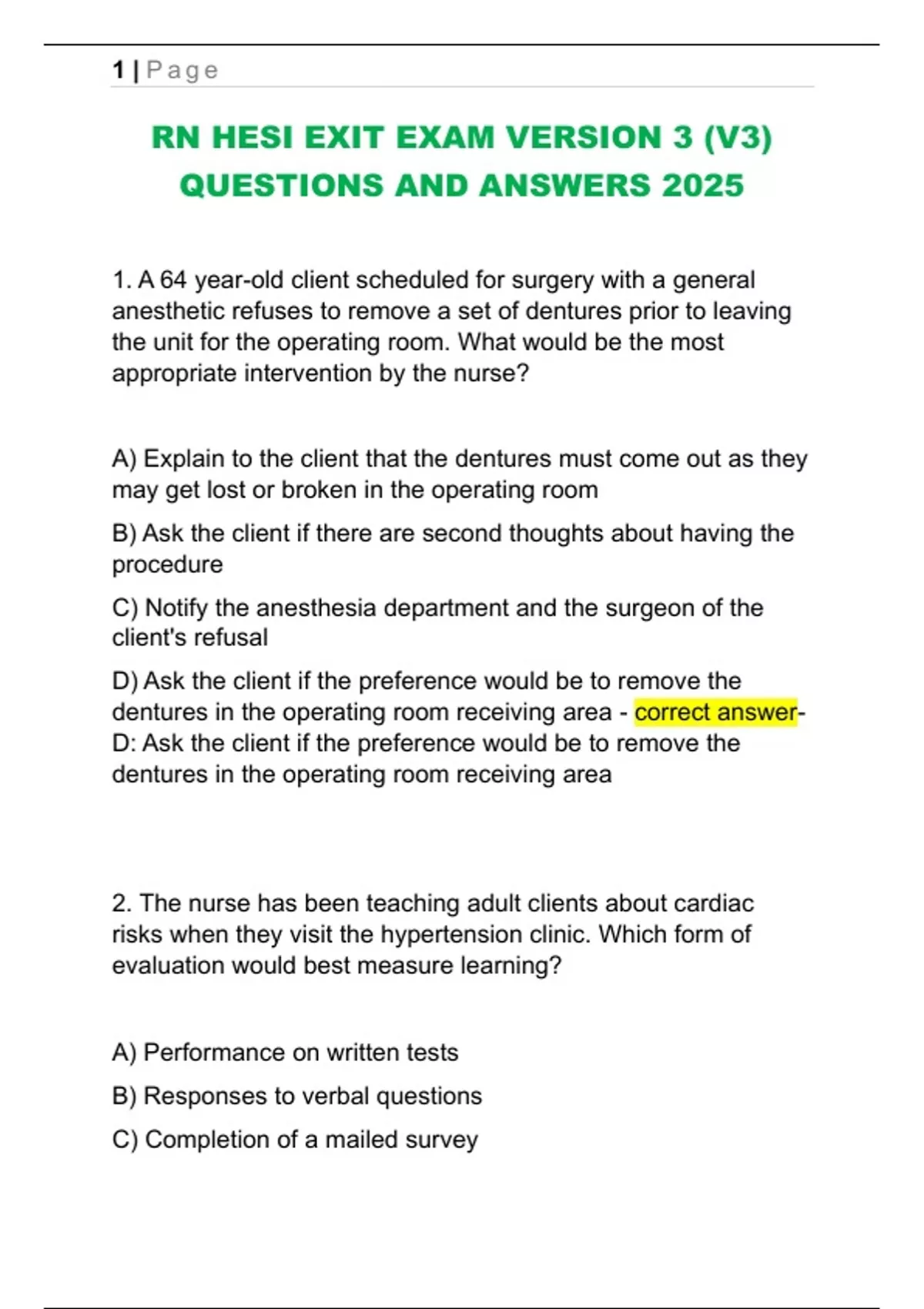 RN HESI EXIT EXAM VERSION 3 (V3)