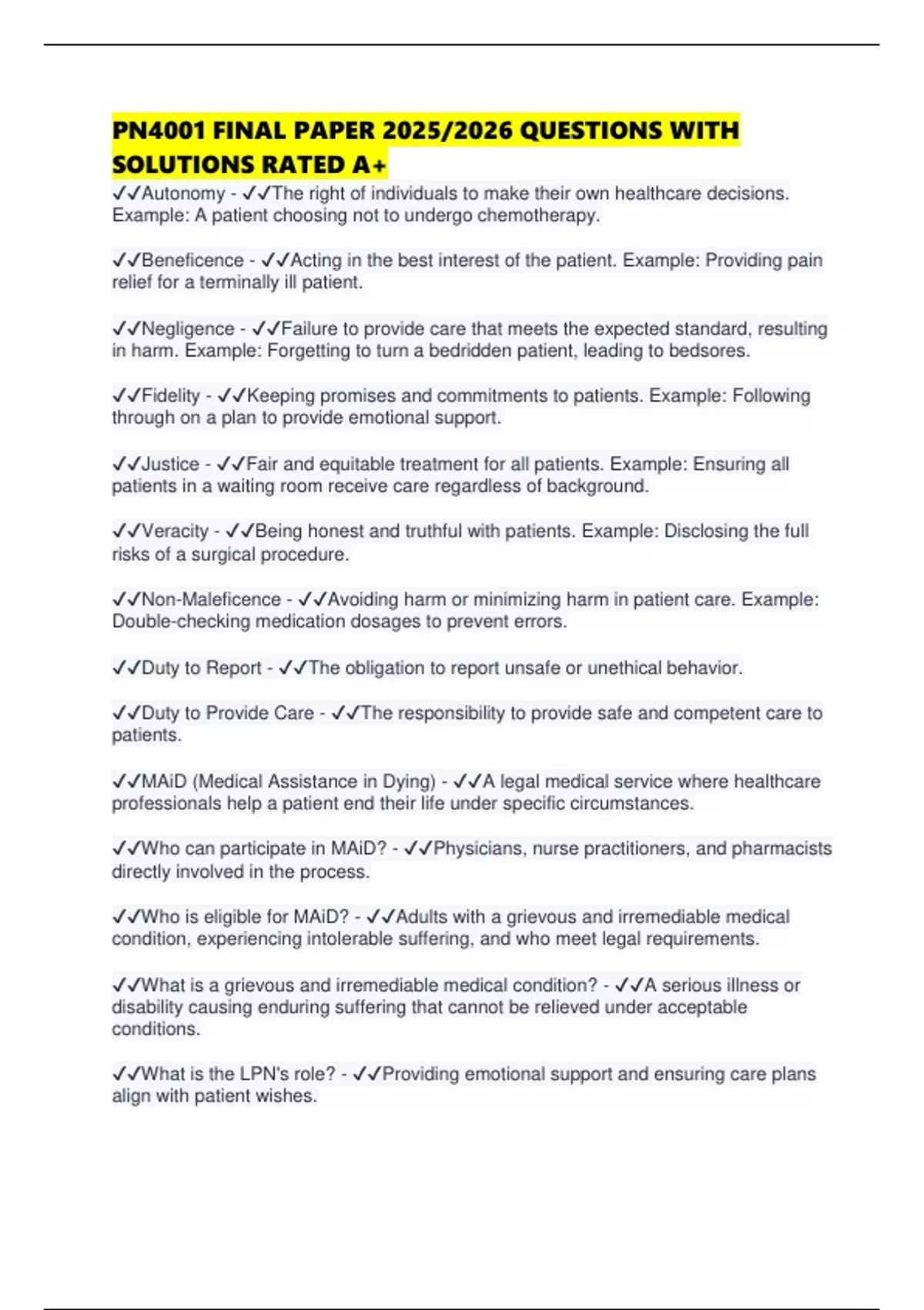 PN4001 FINAL PAPER 2025/2026 QUESTIONS WITH SOLUTIONS RATED A+