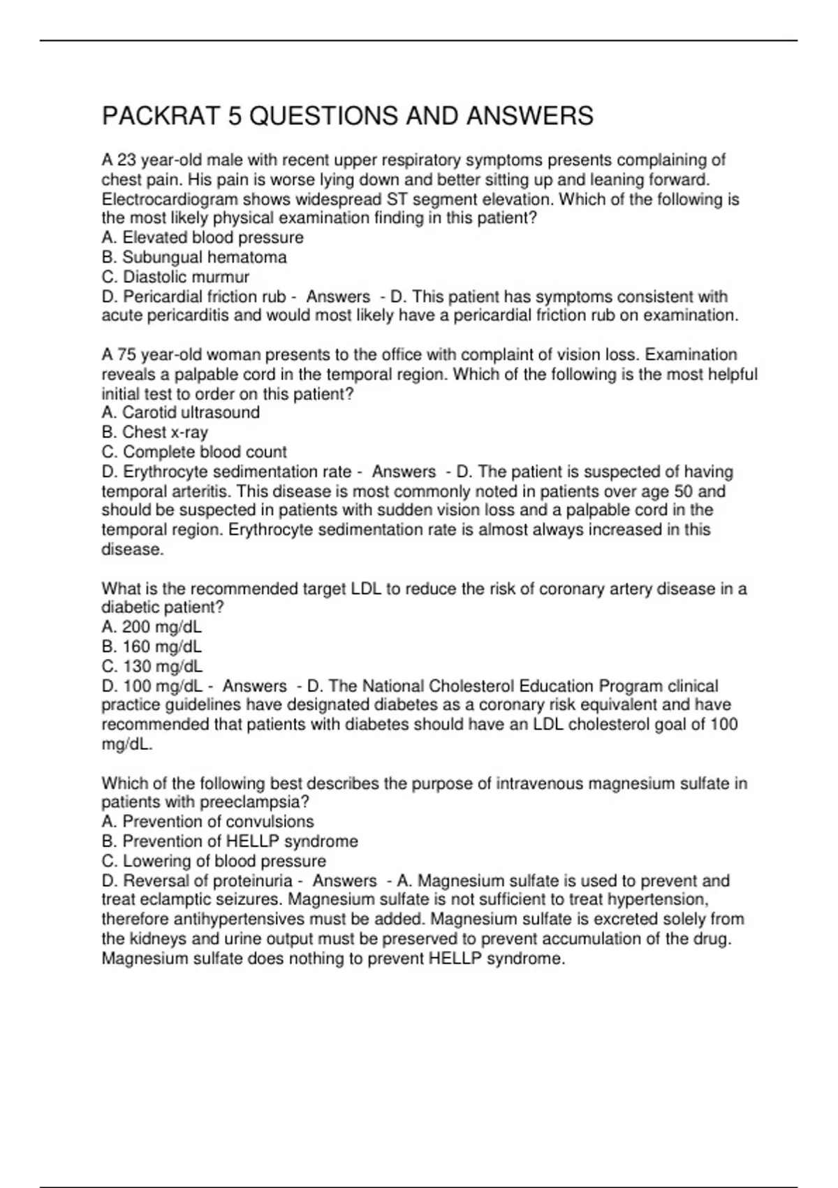 PACKRAT 5 QUESTIONS AND ANSWERS