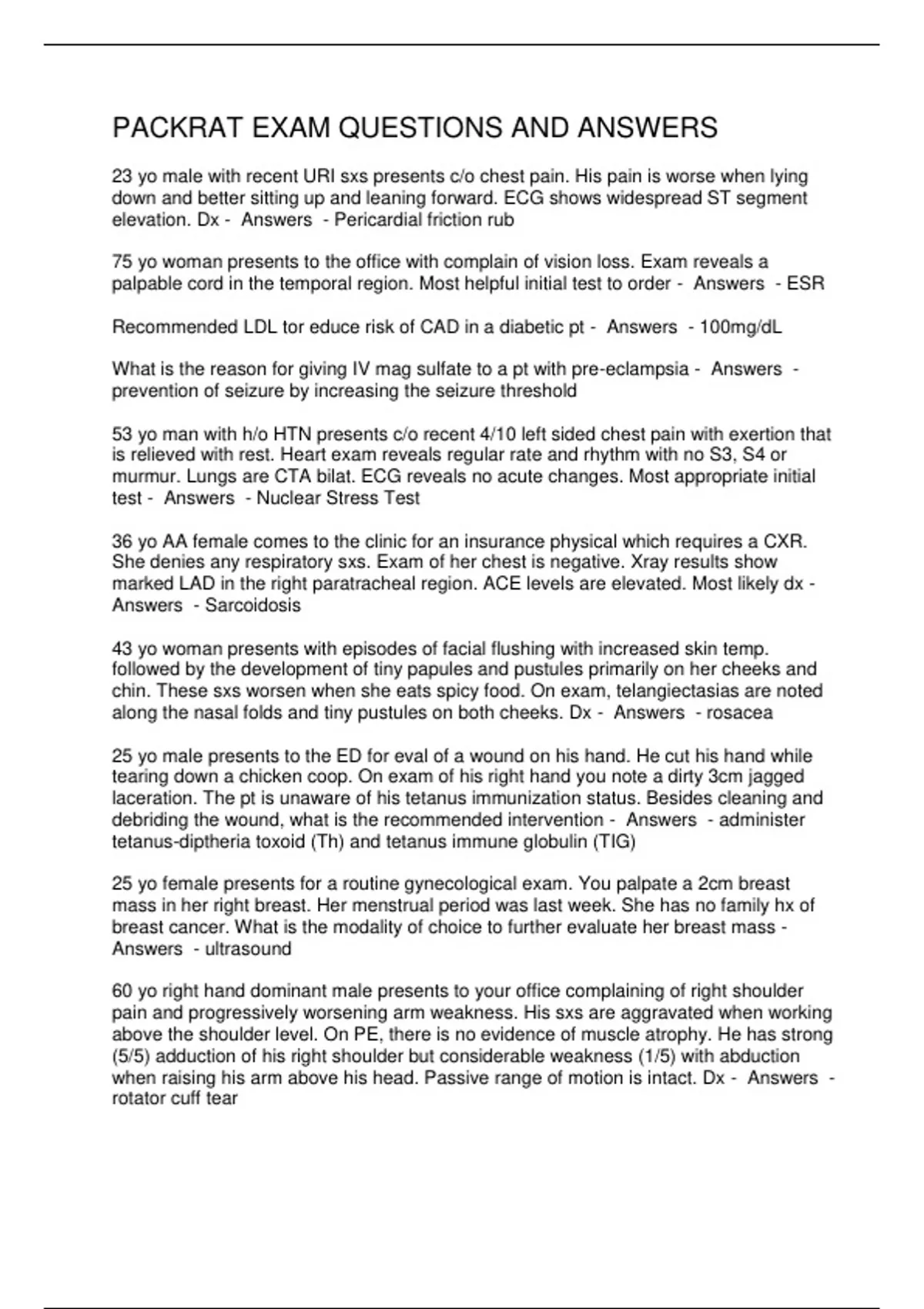 PACKRAT EXAM QUESTIONS AND ANSWERS