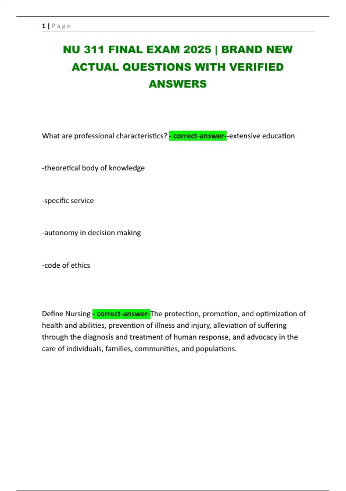 NU 311 FINAL EXAM 2025 | BRAND NEW ACTUAL QUESTIONS WITH VERIFIED ANSWERS