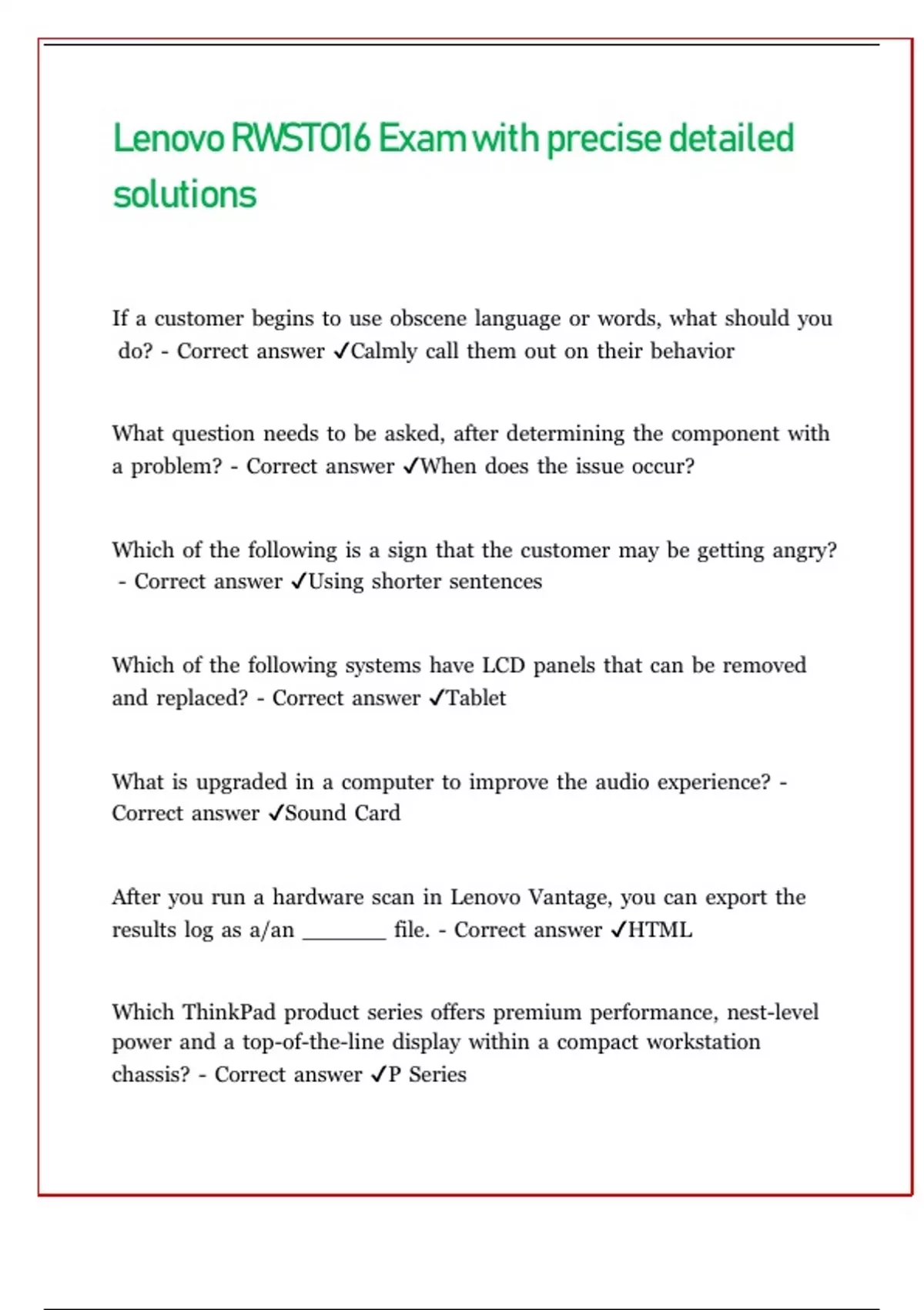 Lenovo RWSTO16 Exam with precise detailed solutions