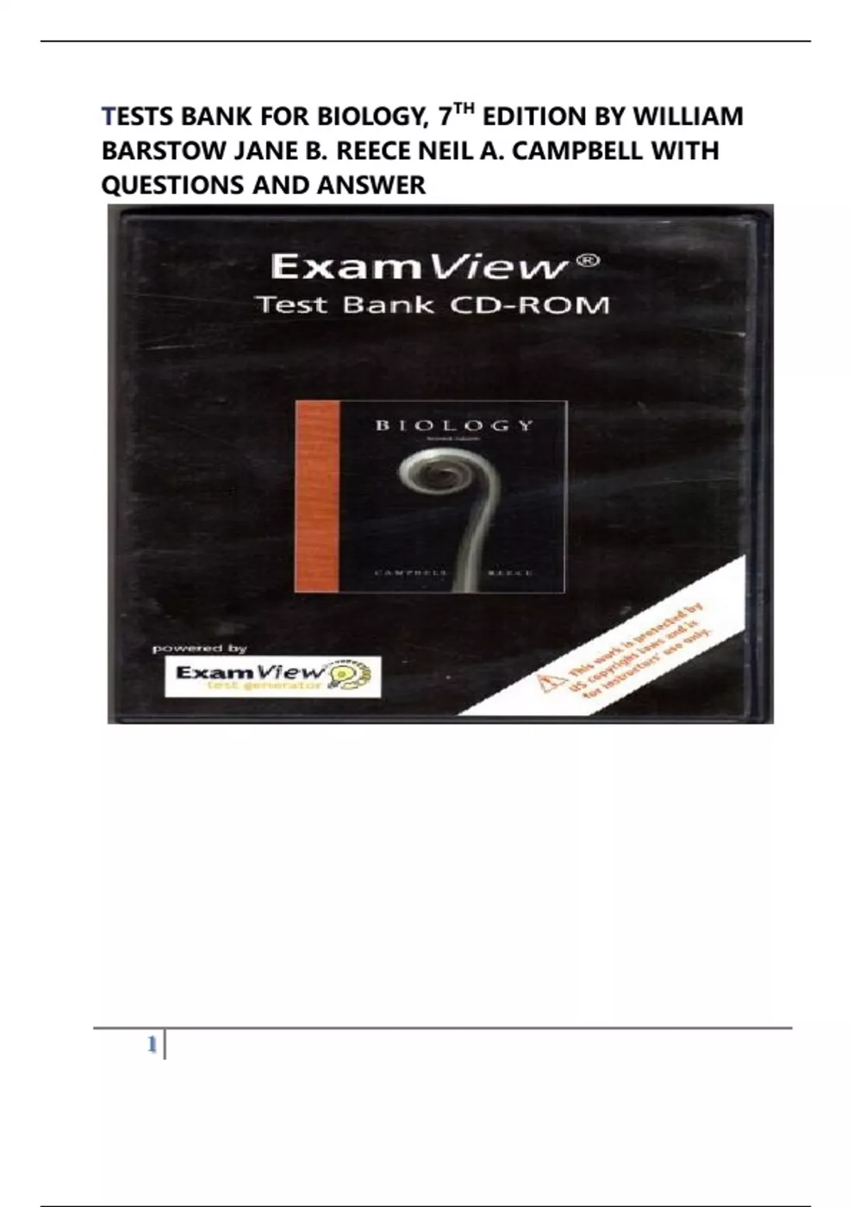 TESTS BANK FOR BIOLOGY, 7TH EDITION BY WILLIAM