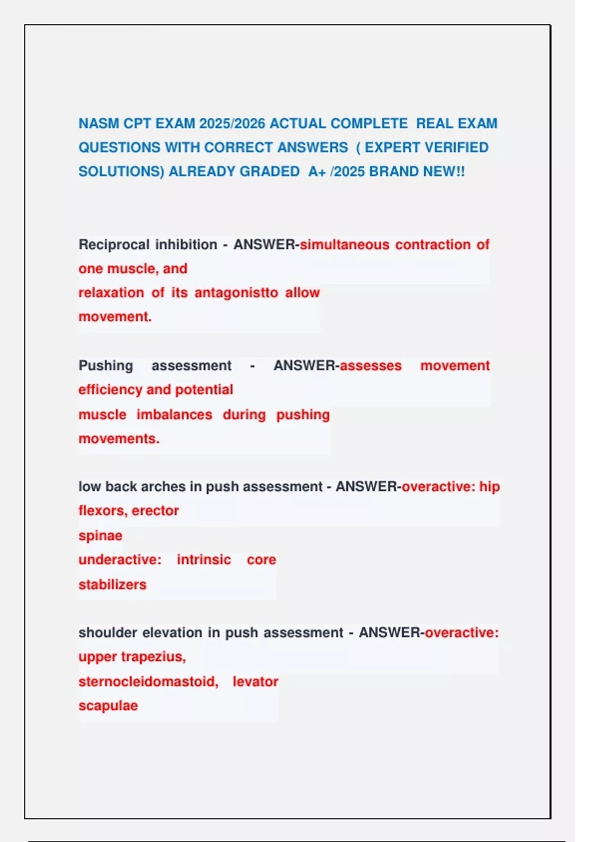 QUESTIONS WITH CORRECT ANSWERS ( EXPERT VERIFIED