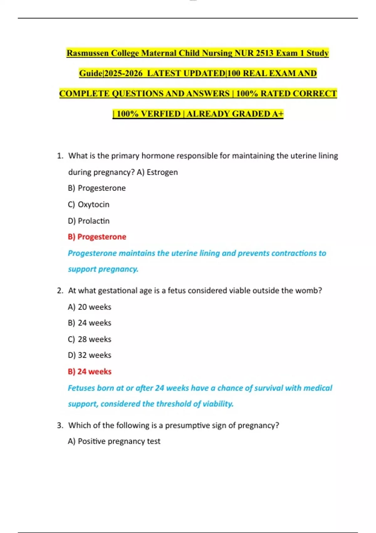 Rasmussen College Maternal Child Nursing NUR 2513 Exam 1 Study