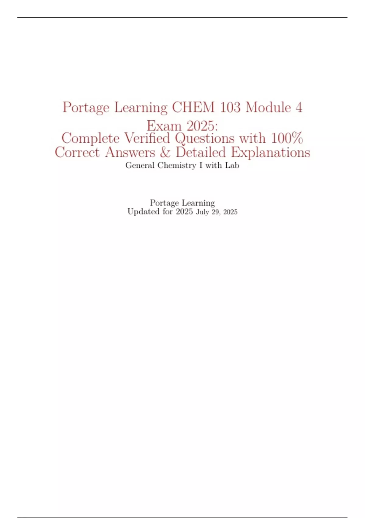 This document serves as a comprehensive study guide for the Portage Learning CHEM 103