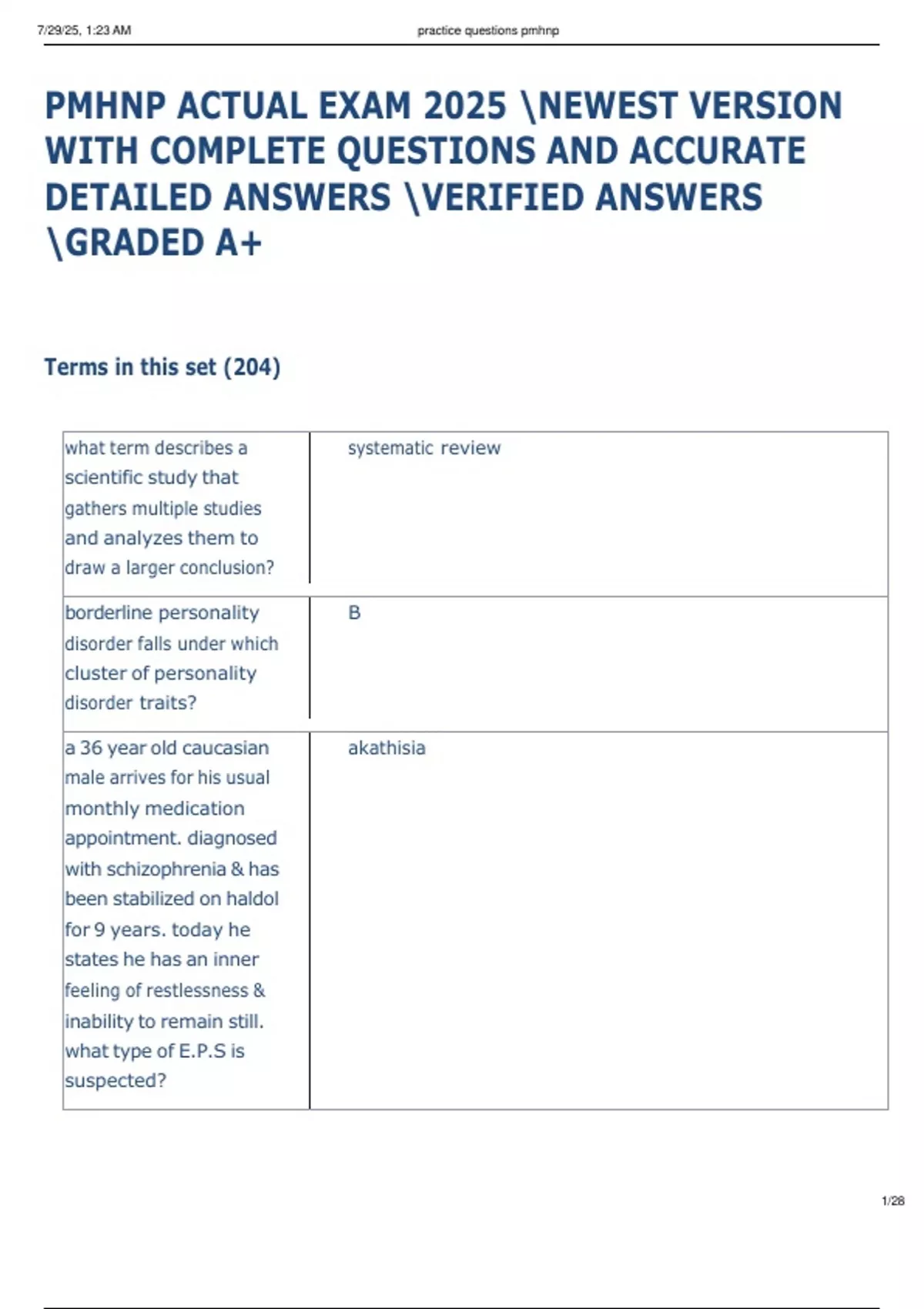 7/29/25, 1:23 AM practice questions pmhnp