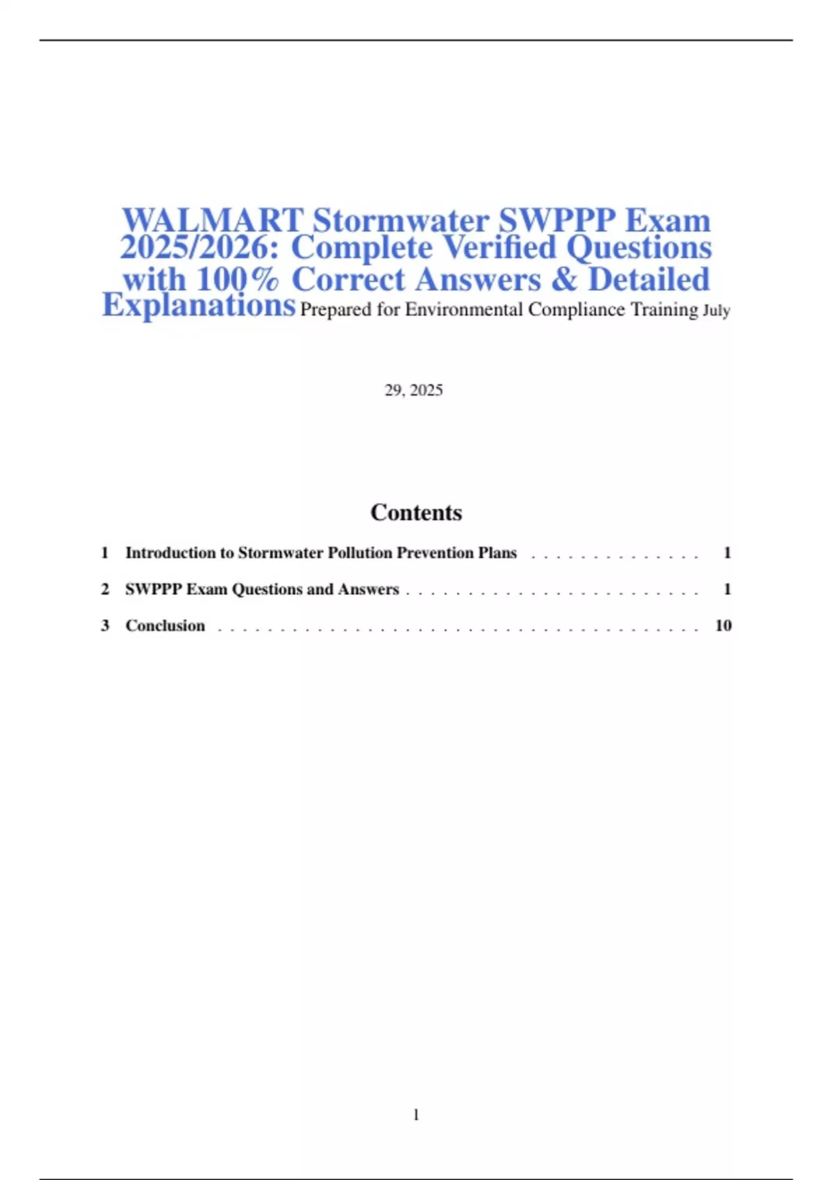 prepare for the WALMART Stormwater SWPPP Exam. The questions are designed to cover