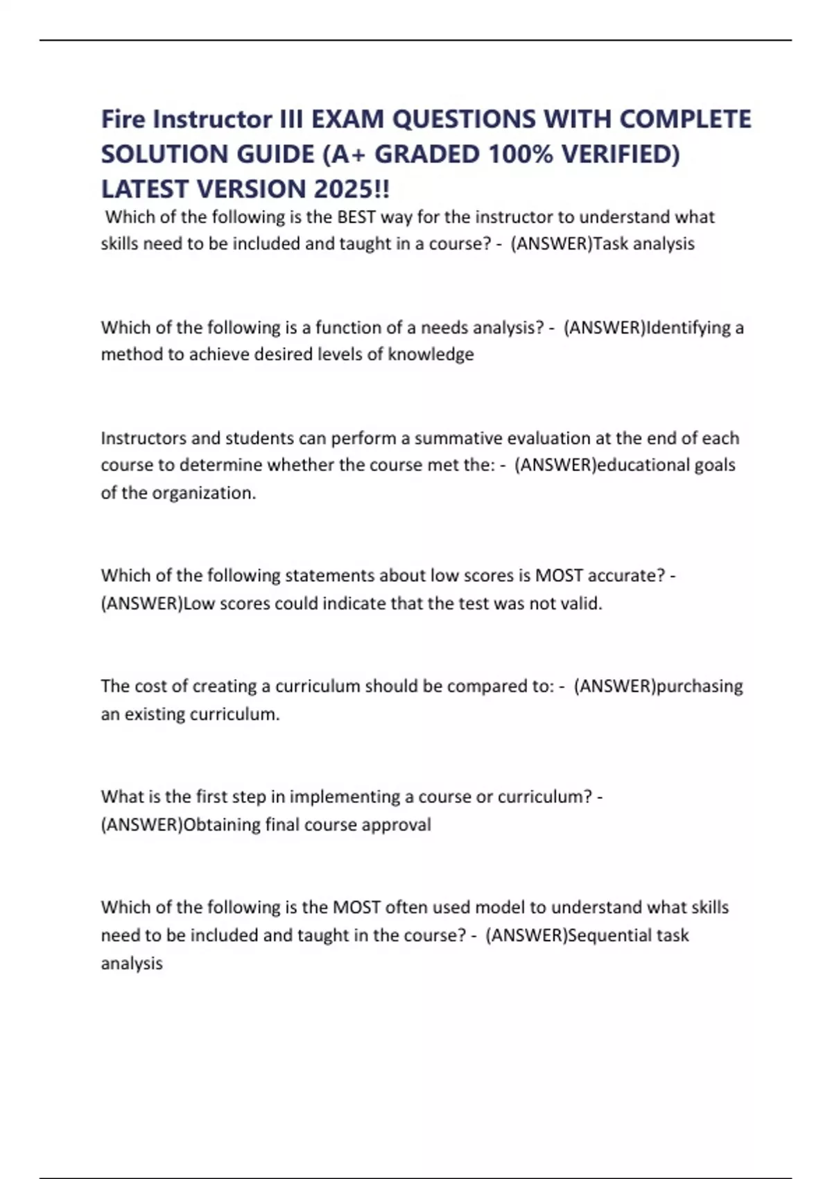 Fire Instructor III EXAM QUESTIONS WITH COMPLETE SOLUTION GUIDE (A+ GRADED 100% VERIFIED) LATEST VERSION 2025!!