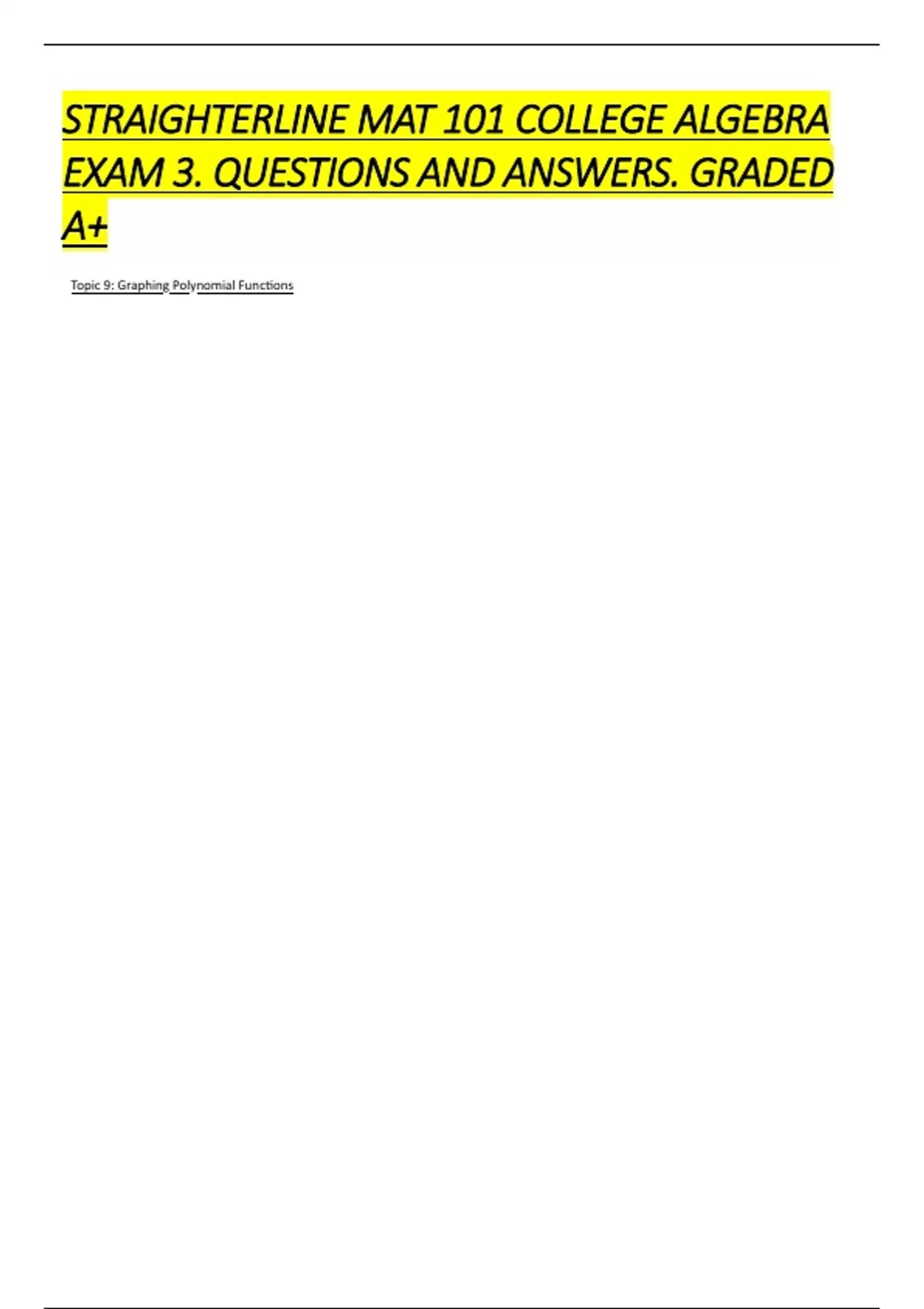 STRAIGHTERLINE MAT 101 COLLEGE ALGEBRA EXAM 3. QUESTIONS AND ANSWERS. GRADED A+