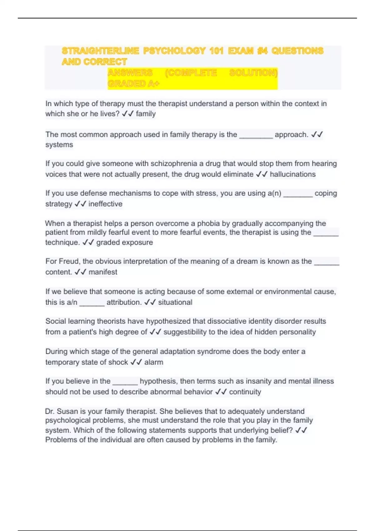 STRAIGHTERLINE PSYCHOLOGY 101 EXAM #4 QUESTIONS AND CORRECT ANSWERS (COMPLETE SOLUTION) GRADED A+
