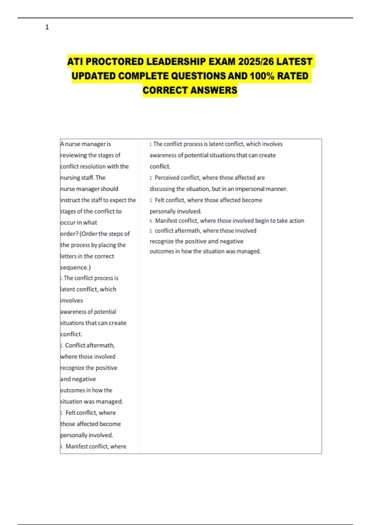 A nurse manager is 1. The conflict process is latent conflict, which involves