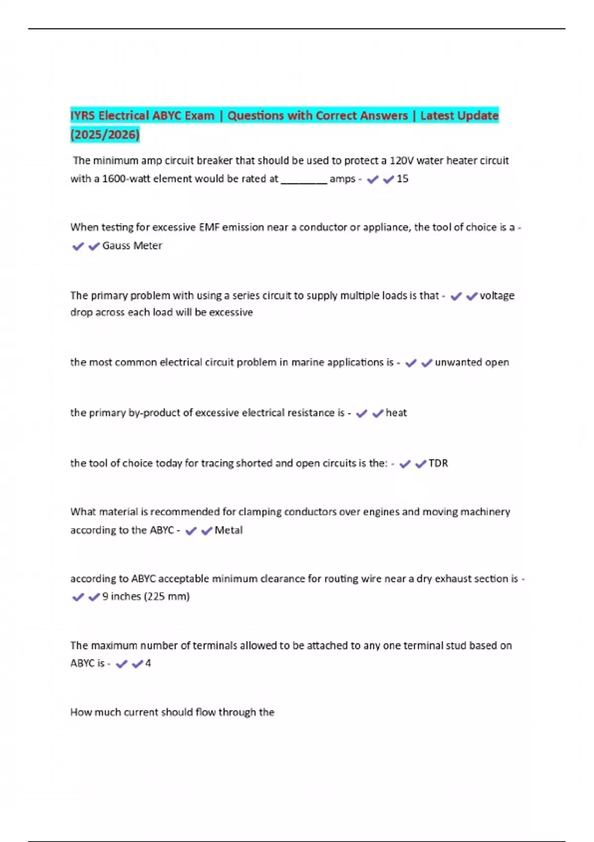 iyrs electrical abyc exam questions with correct