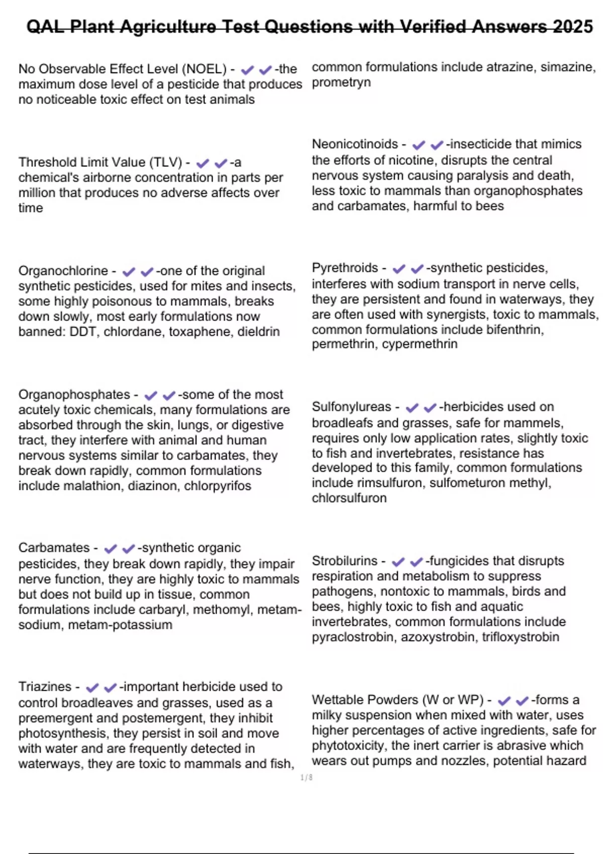 , QAL Plant Agriculture Test Questions with Verified Answers 2025