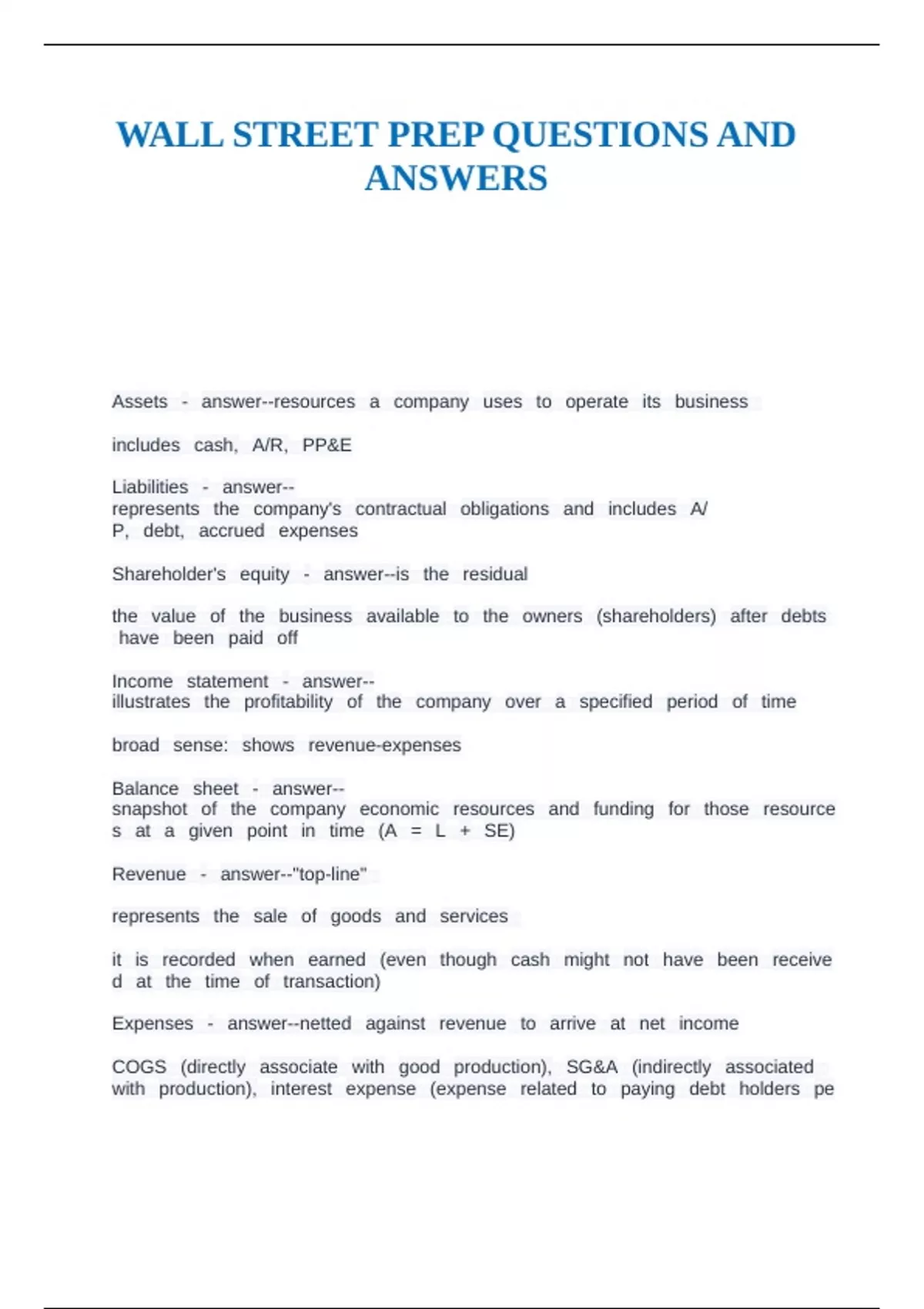 WALL STREET PREP QUESTIONS AND ANSWER3