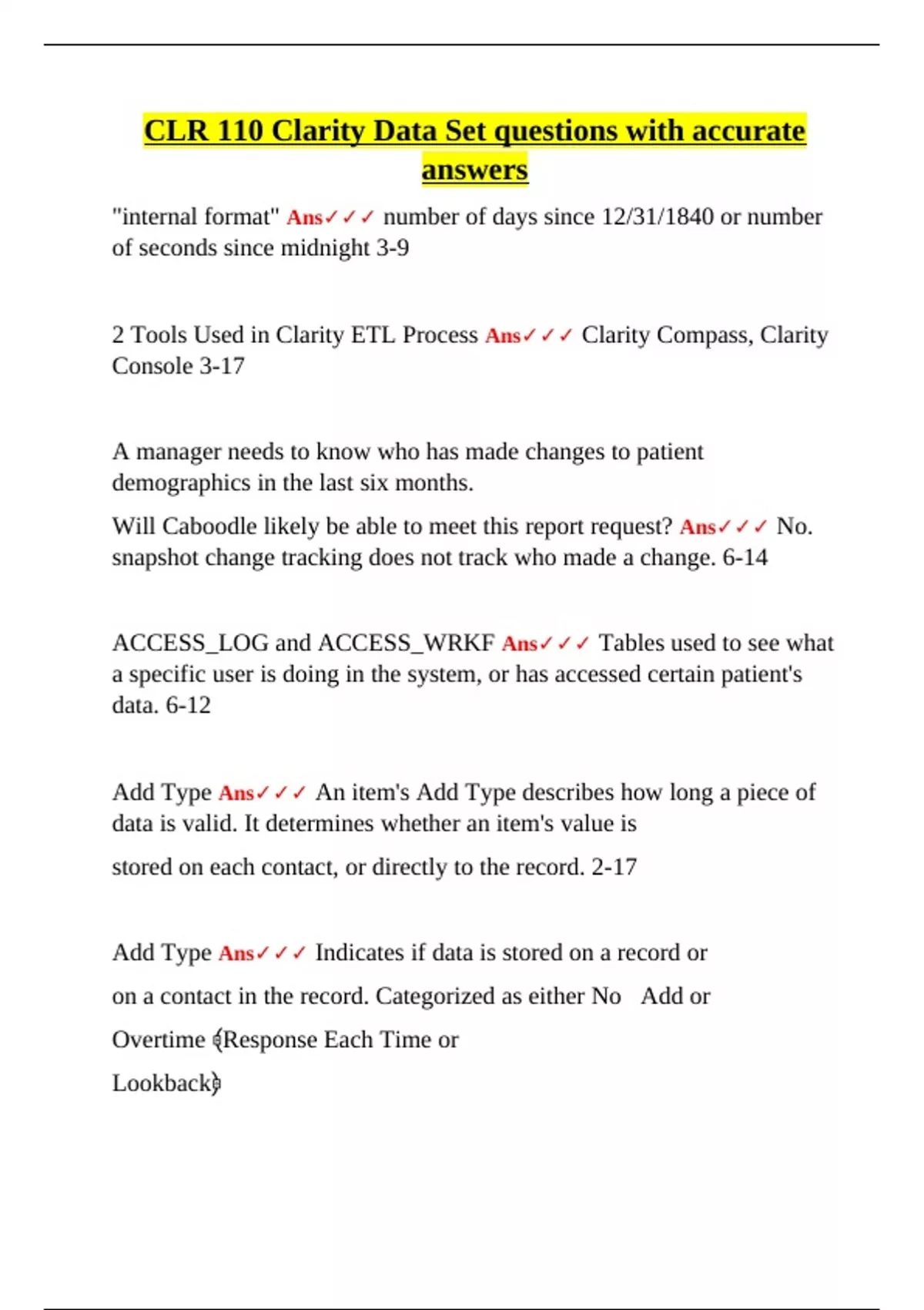, Caboodle Packages Ans✓✓✓ Clarity is the source of Epic data for