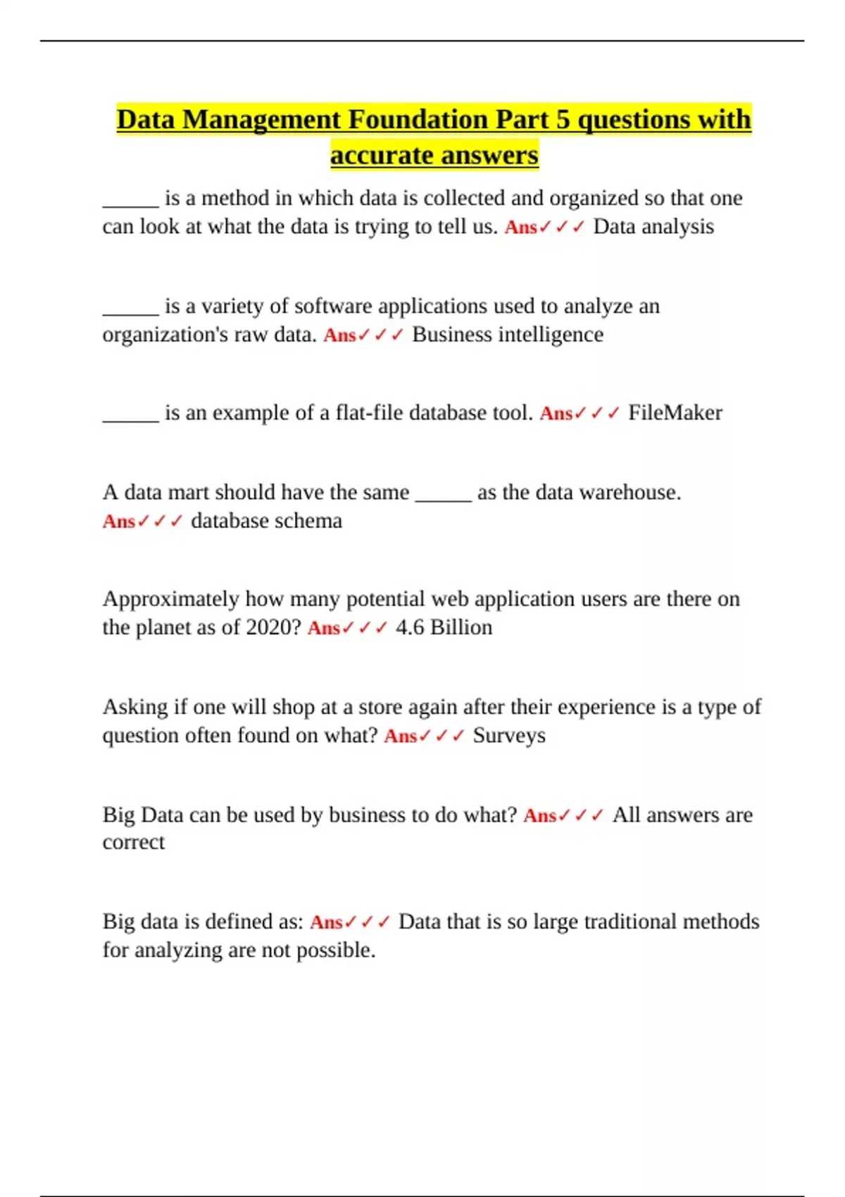 the following? Ans✓✓✓ Data analytics