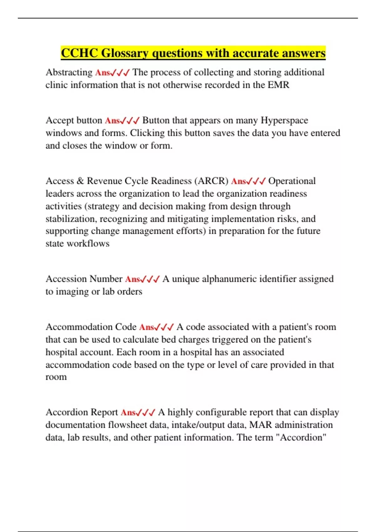 Access & Revenue Cycle Readiness (ARCR) Ans✓✓✓ Operational