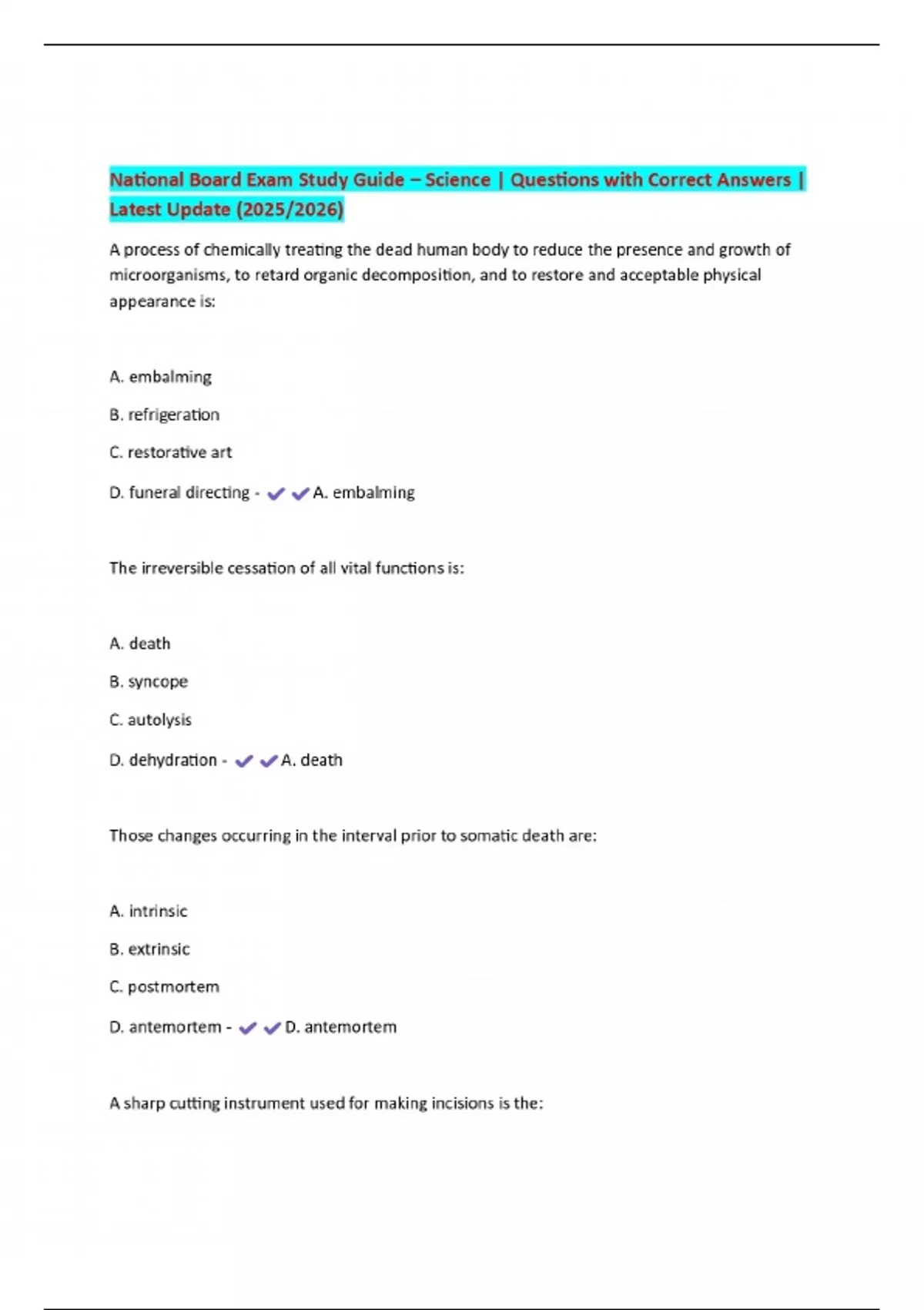 National Board Exam Study Guide – Science | Questions with Correct Answers | Latest Update (2025/2026)