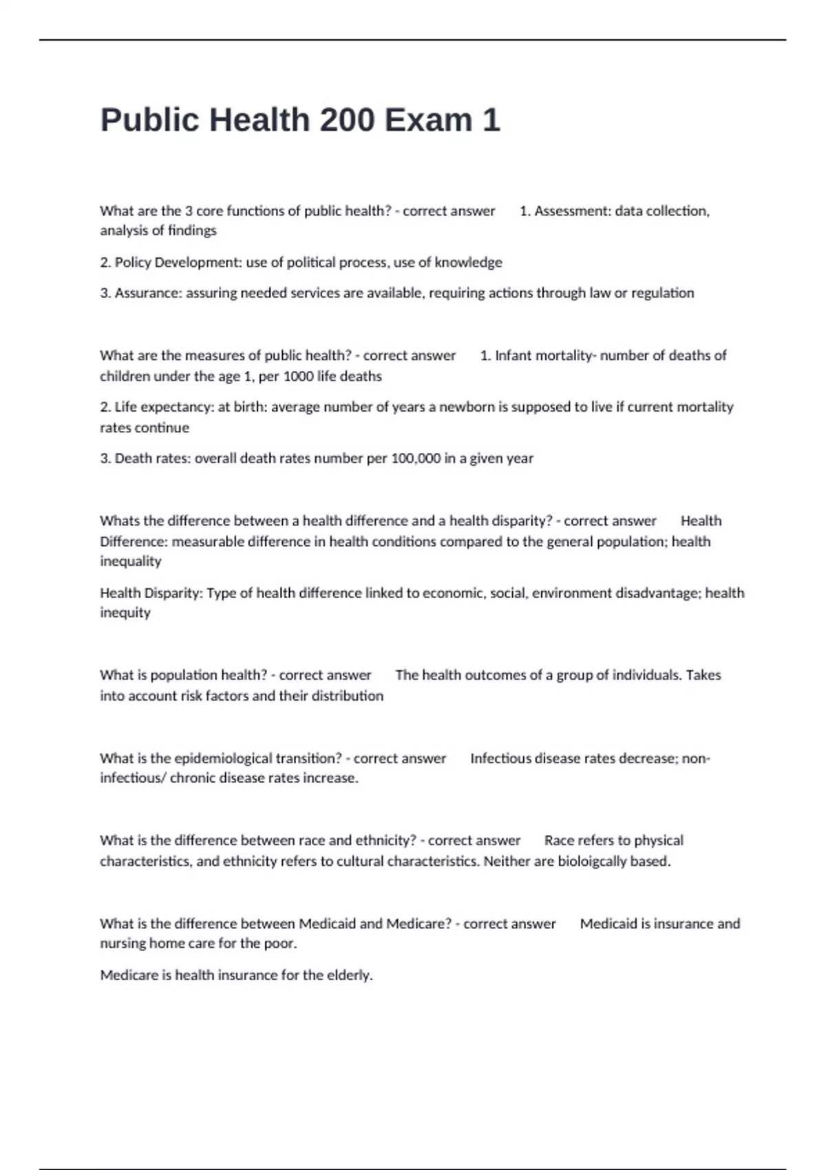 What is population health? - correct answer The health outcomes of a group of individuals. Takes