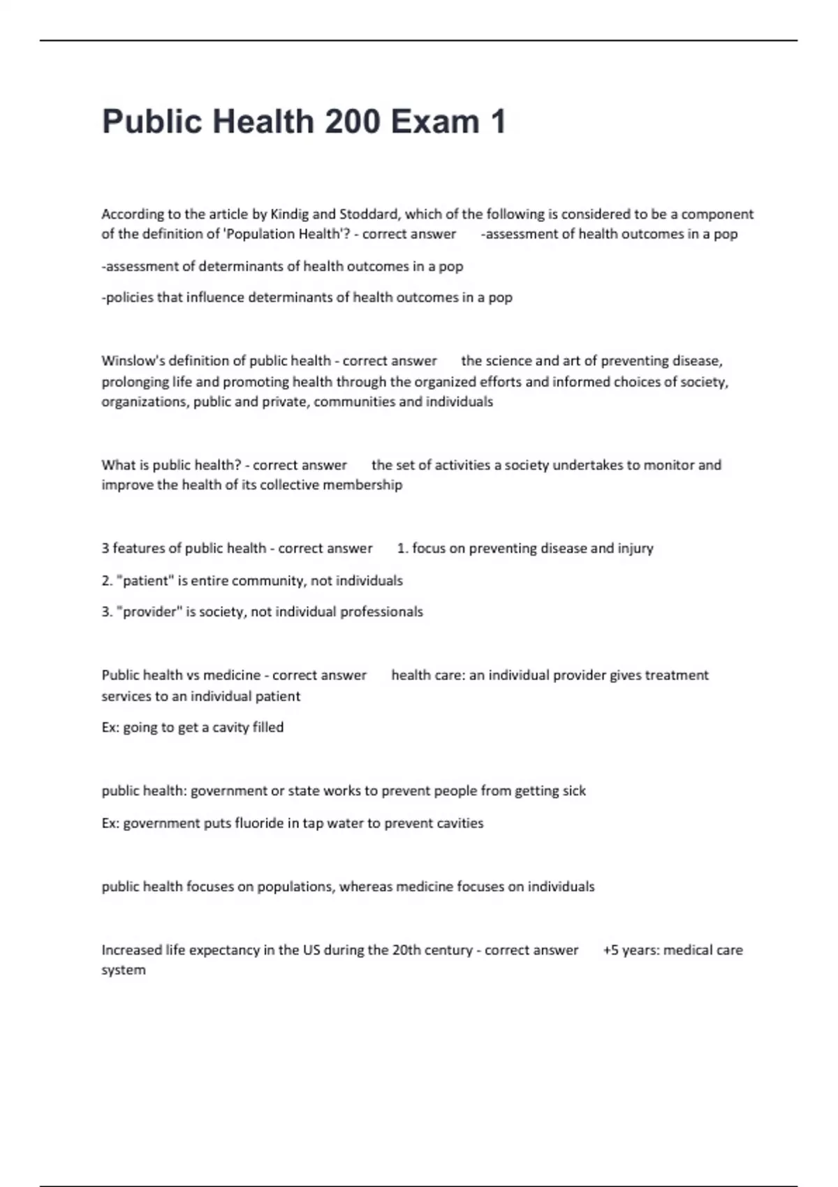 Public health vs medicine - correct answer health care: an individual provider gives treatment