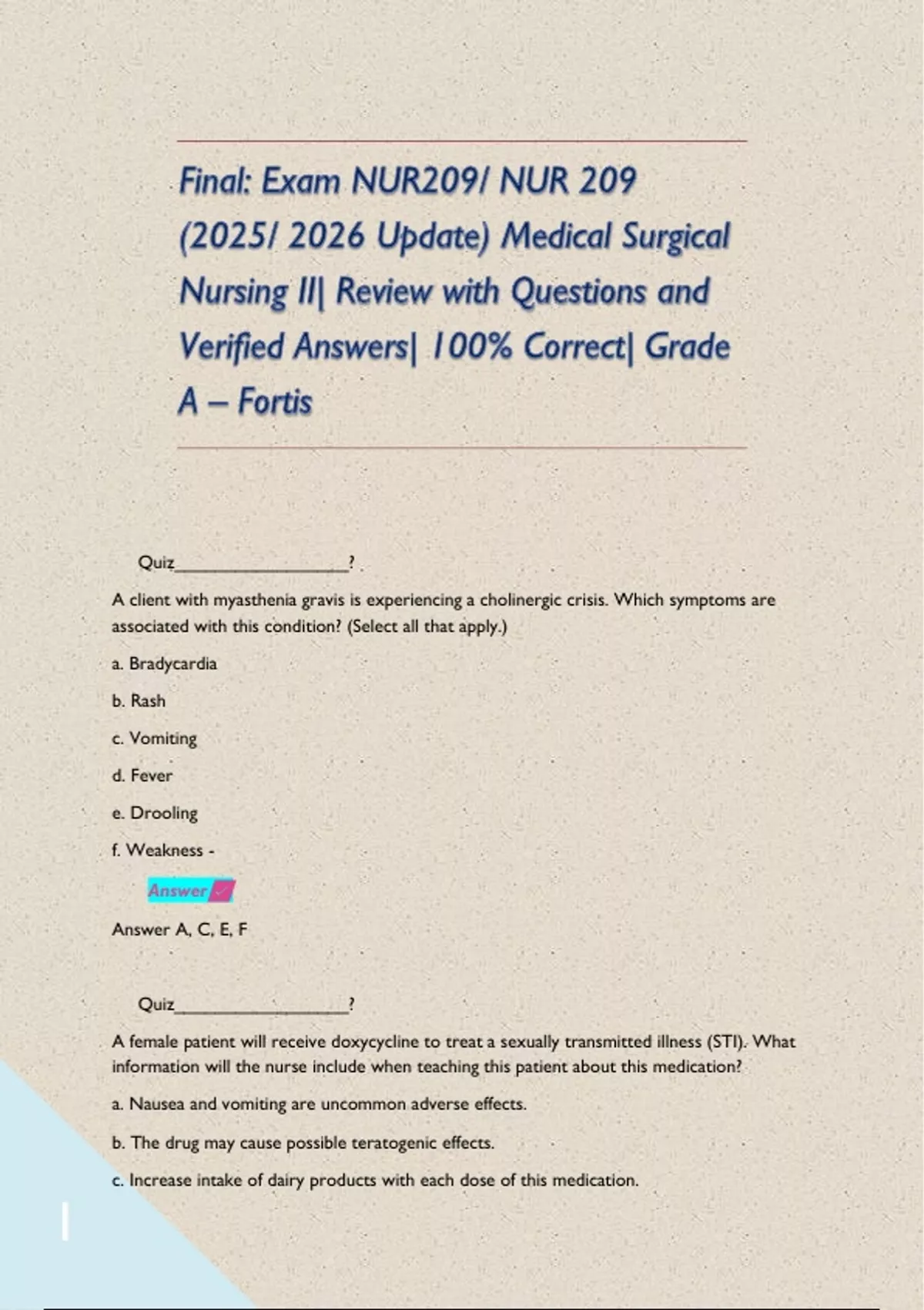 Verified Answers| 100% Correct| Grade